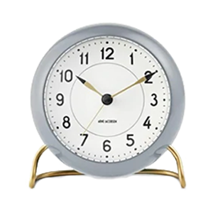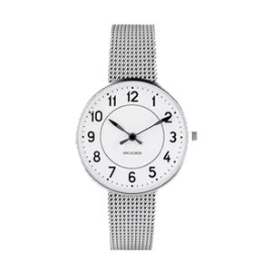 Den första klockan som Arne Jacobsen designade år 1939 går under namnet ”Station”. Denna klocka ritade han på uppdrag av direktören för Lauritz Knudsen, H. J. Hansen som han tidigare hade designat ett hus åt. Detta blev till en elektronsik bordsklocka med och utan väckningsfunktion. Idag är det en av Arne Jacobsens mest sålda produkter. Du hittar Arne Jacobsens Stations-klocka både som bordsklocka, armbandsur och väggklocka hos Vibholm. Med armbandsuret har du möjlighet att välja mellan flera armban i olika färger och material, så du kan få det som passar just din smak.