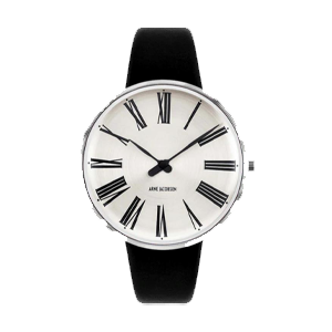 Nästa klocka som Arne Jacobsen designade var hans Roman-ur. Detta var från början designat till Aarhus Rådhus när det invigdes i 1942. Egentligen var rådhuset designat utan torn och därmed också utan de klassiska klocktornen eftersom det inte stämde överens med Arne Jacobsens filosofi om funktionalitet. Men, efter otaliga protester lade man till ett torn. Du hittar Arne Jacobsens Roman-klocka både som armbandsur, bords- och väggklocka hos Vibholm. Om du älskar den ikoniska urtavlan, så är chanserna stora att du hittar en armbandsklocka som passar just din smak med samma urtavla. Det finns bland annat en Arne Jacobsen Roman-klocka i rostfritt stål med vit urtavla och brun läderrem i kalvskinn. Du kan även välja en Arne Jacobsen Roman-klocka i rosa guldpläterat stål med en vit urtavla och matt mesh-länk. Dessa är blott två av flera olika valmöjligheter när det kommer till att hitta den perfekta Arne Jacobsen-klockan.