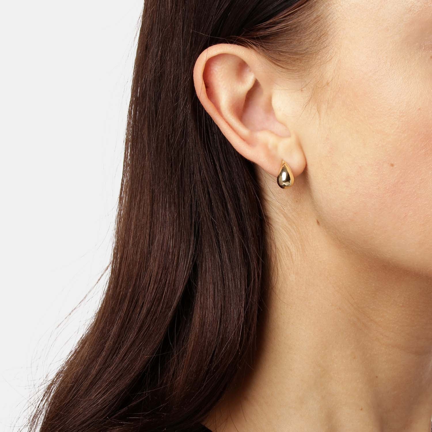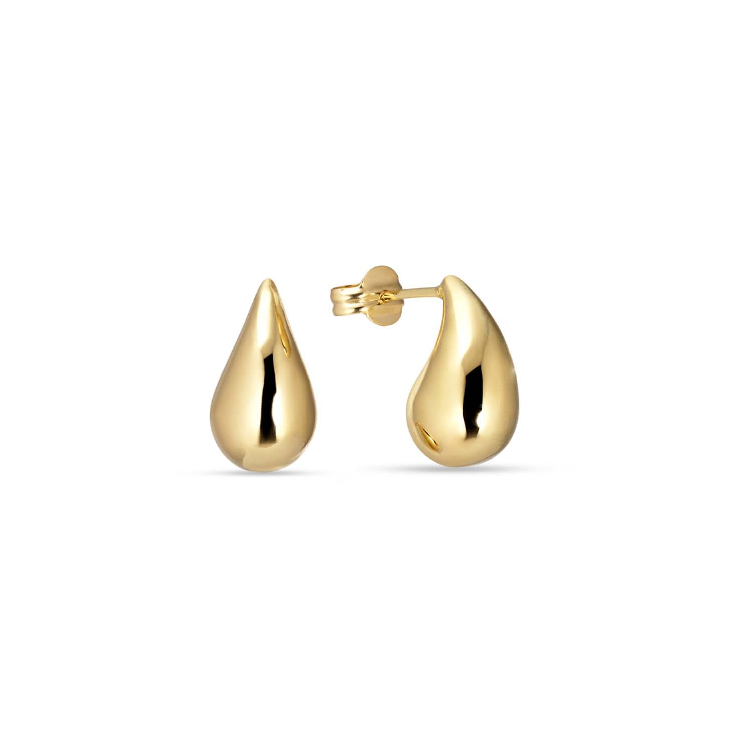 Dessa örhängen har en vacker, slät yta som reflekterar ljus på ett sofistikerat sätt. Den droppformade silhuetten ger en modern twist till den klassiska guldlooken. De är designade med en enkel men iögonfallande form och kommer att framhäva din stil utan att vara överväldigande.