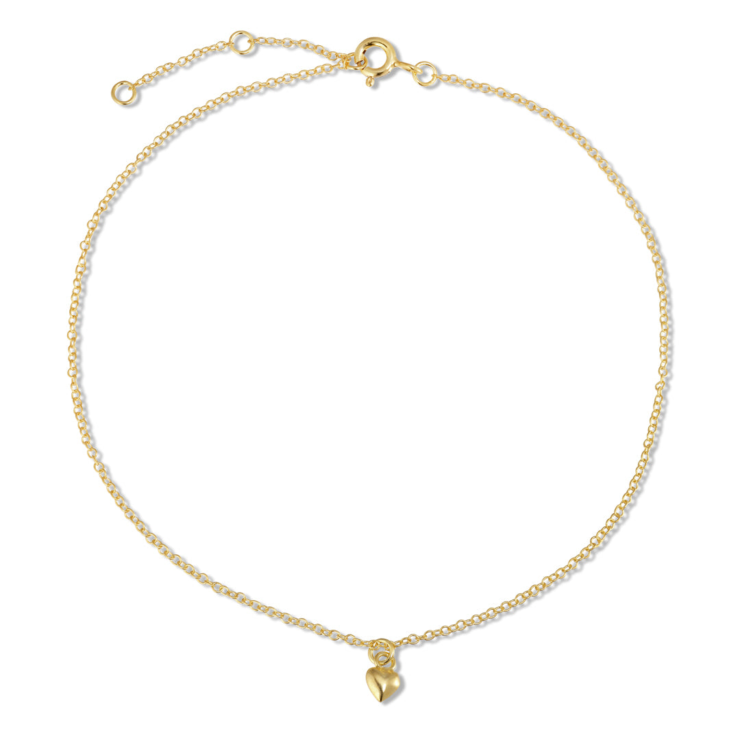 Vibholm SØLV - Fotlänk med hjärtberlock, 23+3 cm - Förgyllt silver