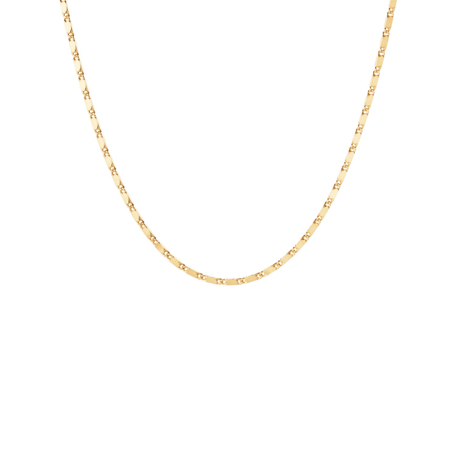 Den guldpläterade ytan ger halsbandet ett varmt, gyllene sken som fångar ljuset på ett hisnande sätt. Den fina kedjan är både robust och delikat, vilket gör den bekväm att bära hela dagen. Med en längd på 45 cm faller halsbandet elegant runt halsen och framhäver din look med subtil elegans.