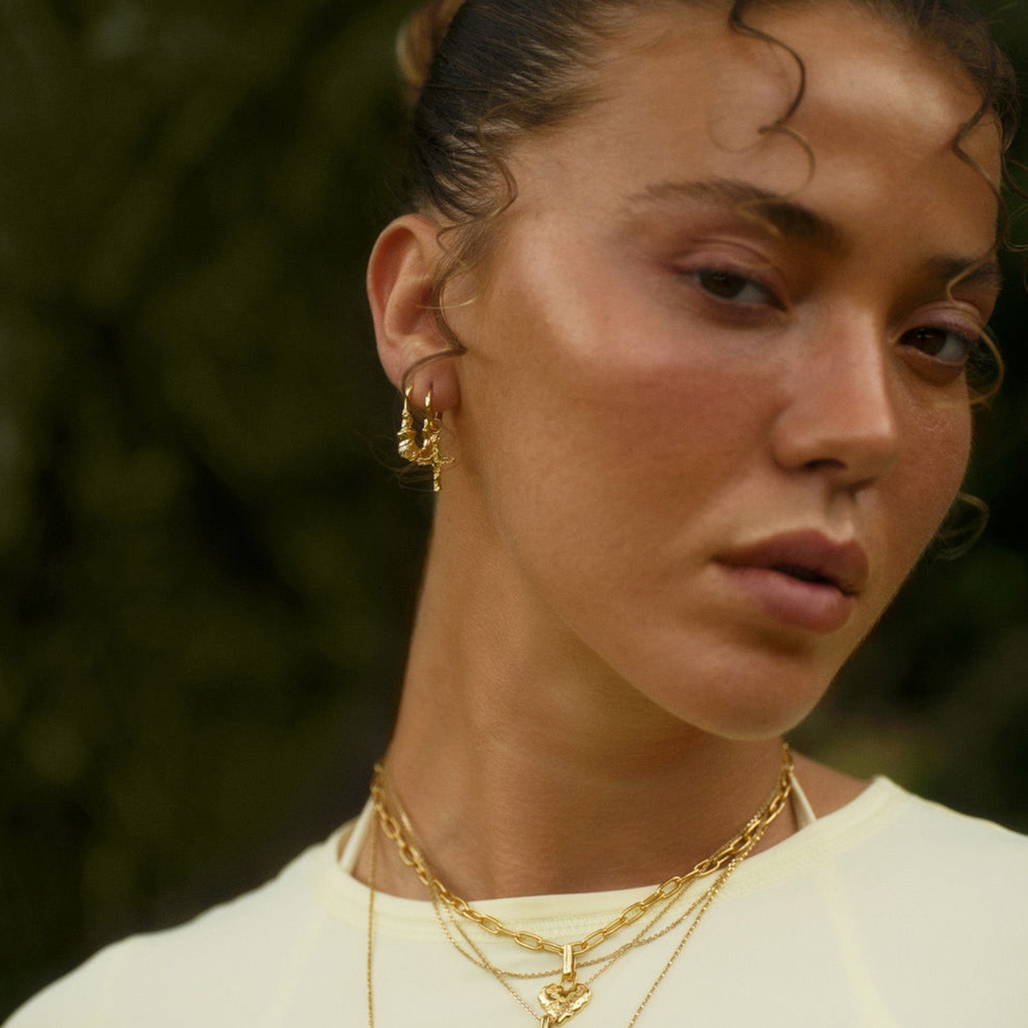 Örhängena har en vacker gyllene nyans som framhäver deras eleganta form. Den guldpläterade ytan ger ett varmt sken som fångar ljuset på ett hisnande sätt. De organiska formerna skapar en intressant kontrast som ger djup och karaktär till designen.