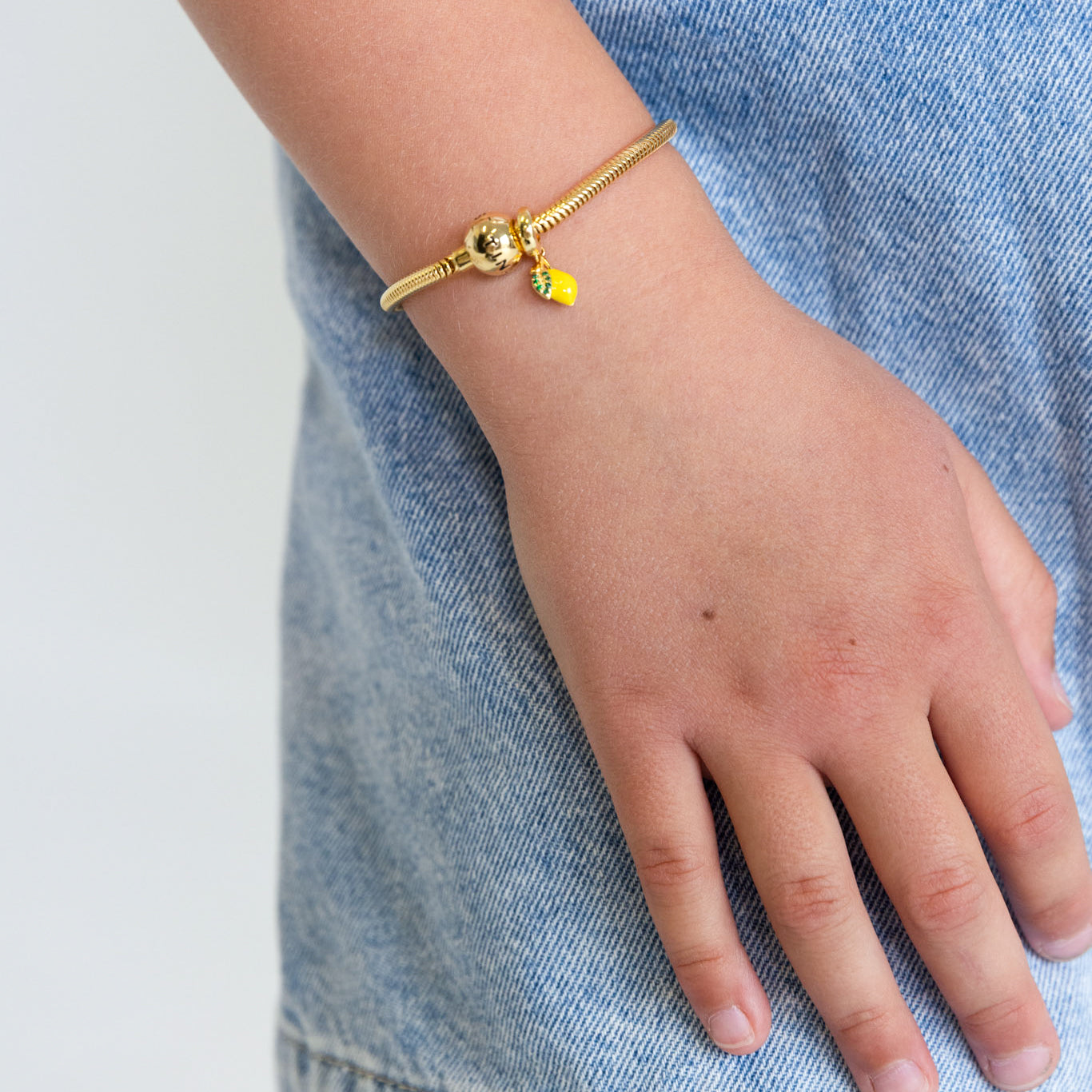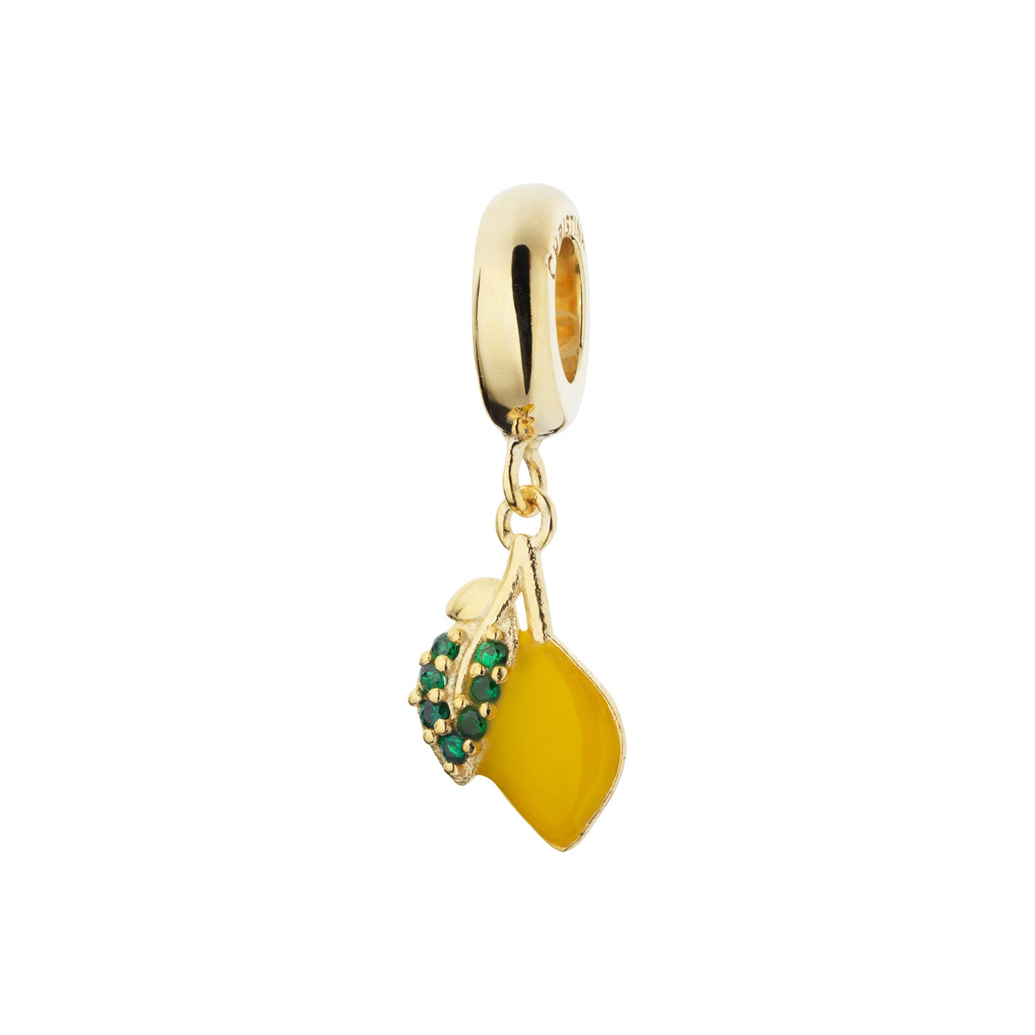 Få in lite solsken i din vardag med denna fräscha citronberlock från Christina x Mie Isak. Inspirerad av citatet "När livet ger dig citroner" påminner denna berlock oss om att vända motgångar till något positivt. Den gula emaljen och de gröna stenarna ger ett lekfullt och färgstarkt uttryck som kan lysa upp de tråkigaste dagar.