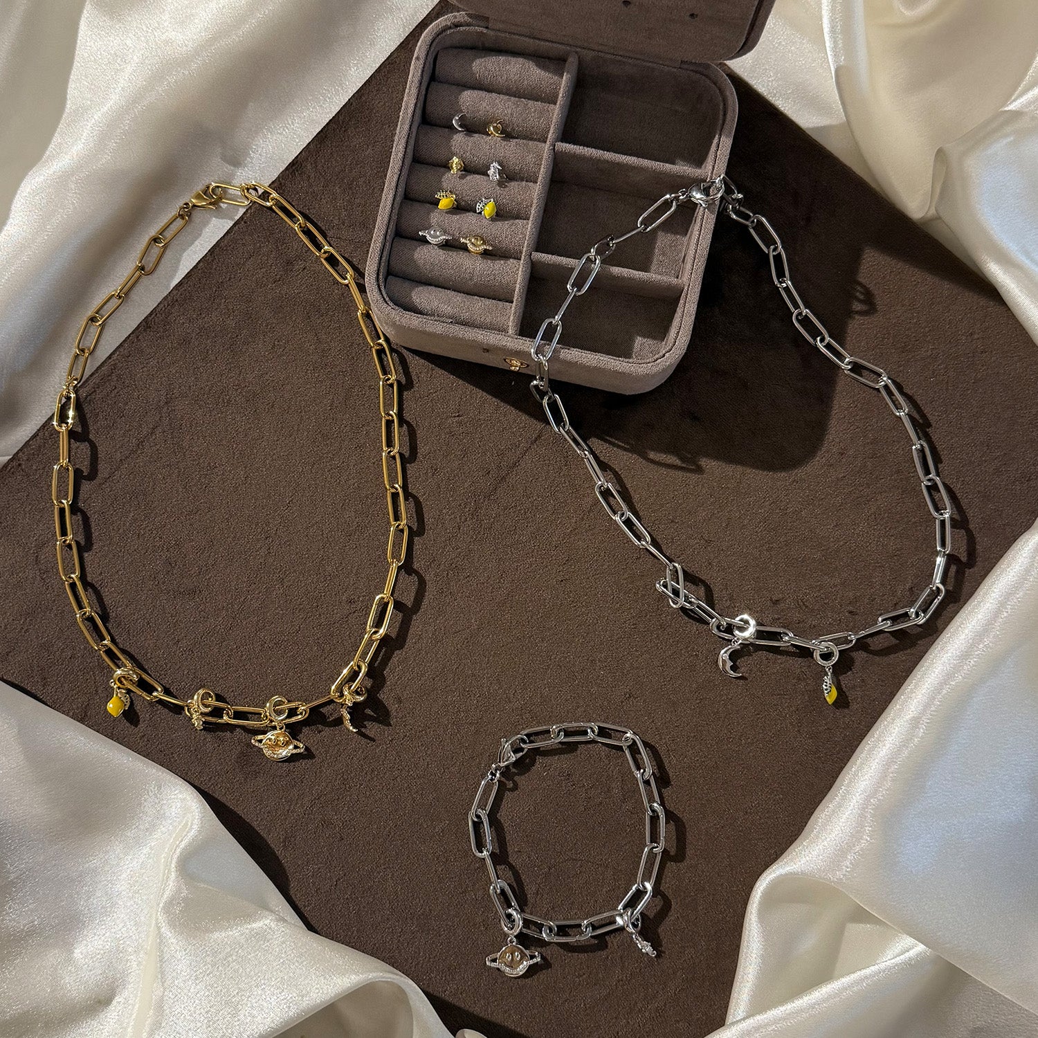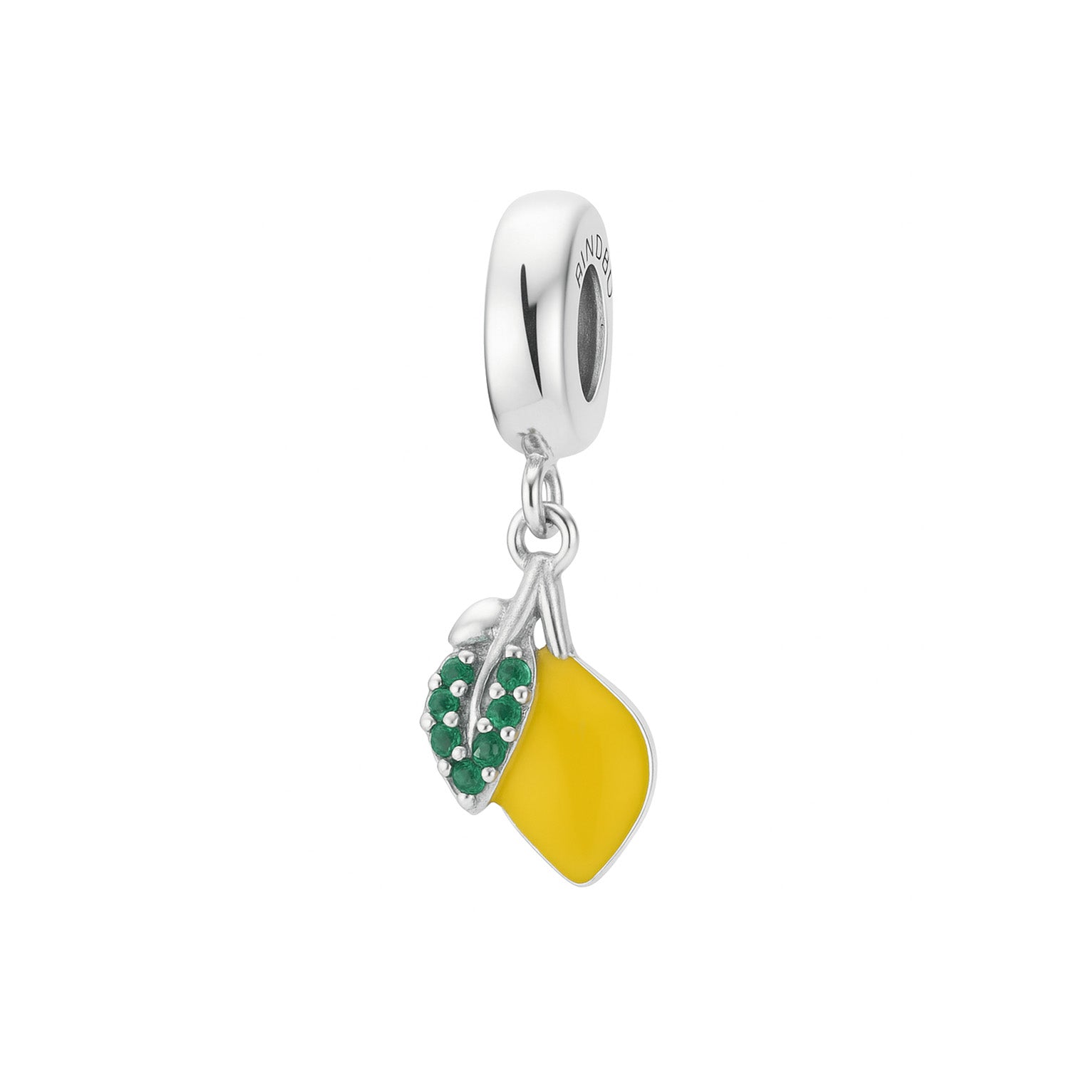 Den silverfärgade basen ger berlocken en elegant lyster som framhäver de livfulla färgerna. Den gula emaljen lyser starkt och tillför en varm, solig känsla, medan de små gröna stenarna ger en subtil kontrast som drar blickarna till sig. Denna berlock är inte bara ett smycke, utan en påminnelse om att hitta glädje i vardagens små ögonblick.