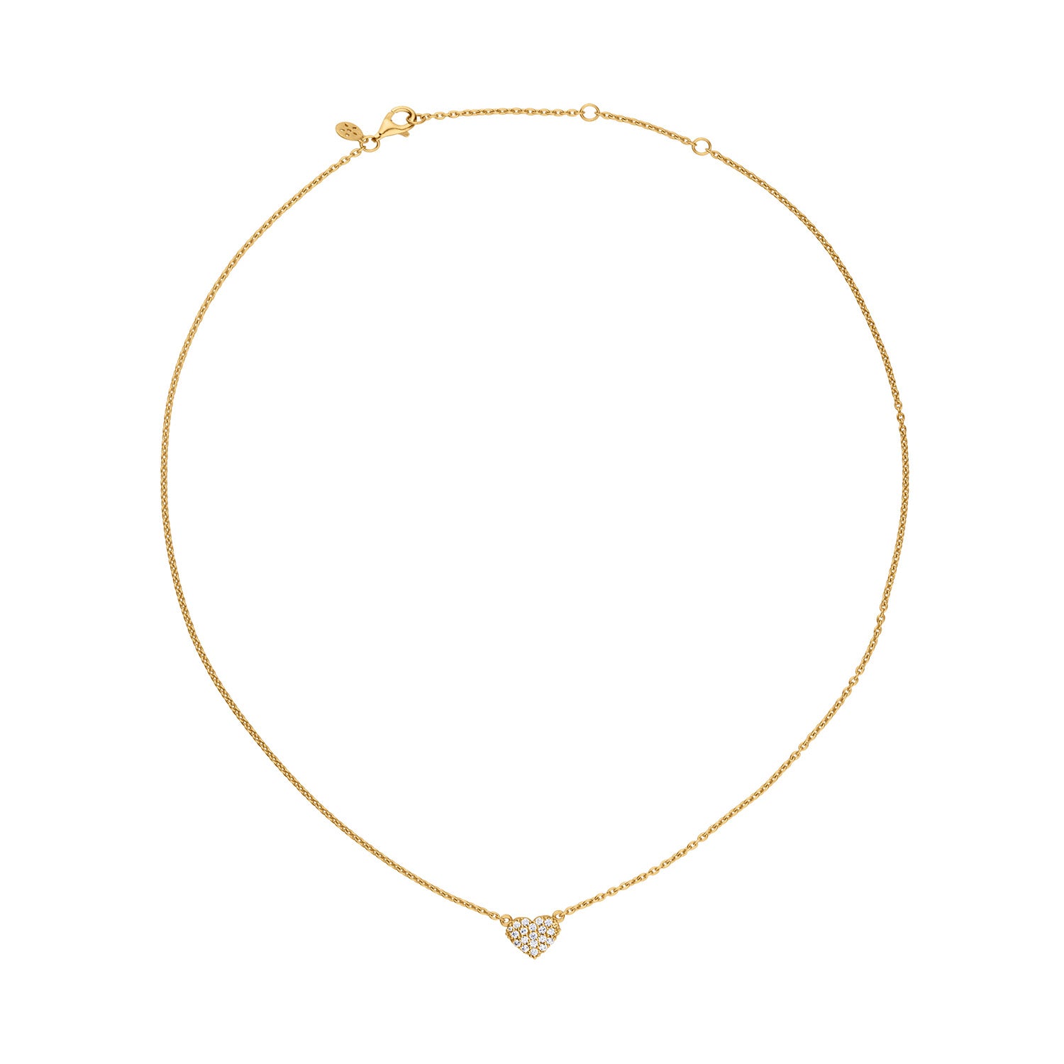 Den gyllene färgen på det förgyllda silvret skapar en varm och inbjudande glöd som kompletterar alla hudtoner. Zirkonstenarna är noggrant infattade för att säkerställa maximal glans och hållbarhet. Halsbandets fina kedja och delikata hjärthänge skapar en lätt och luftig look som känns bekväm att bära hela dagen.