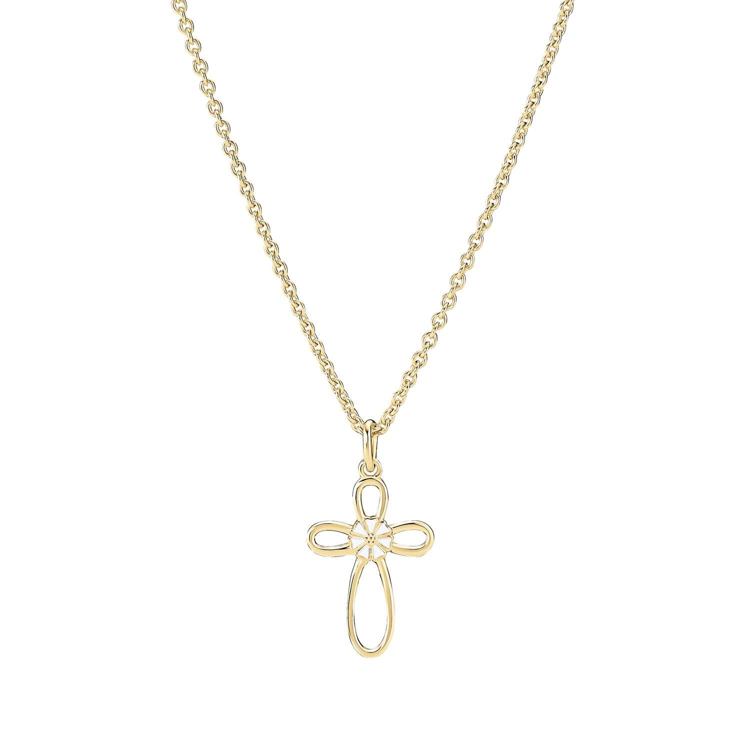 Upptäck den tidlösa elegansen med Lund Copenhagens Marguerit cross-halsband. Detta vackra halsband är tillverkat i guldpläterat silver, vilket ger det ett varmt och inbjudande sken. Perfekt som present till henne som uppskattar klassisk skönhet och kvalitet.