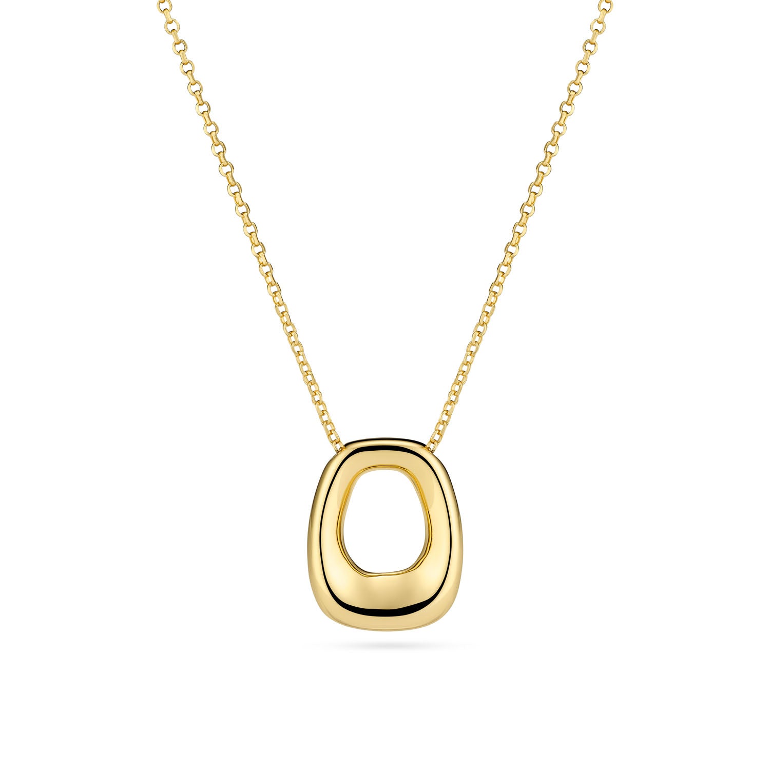 Den släta, guldpläterade ytan reflekterar ljuset vackert, vilket skapar en subtil men iögonfallande effekt. Halsbandets design är enkel men sofistikerad, vilket gör det till ett mångsidigt smycke som kan bäras ensamt eller kombineras med andra smycken för en mer lager-på-lager-look.