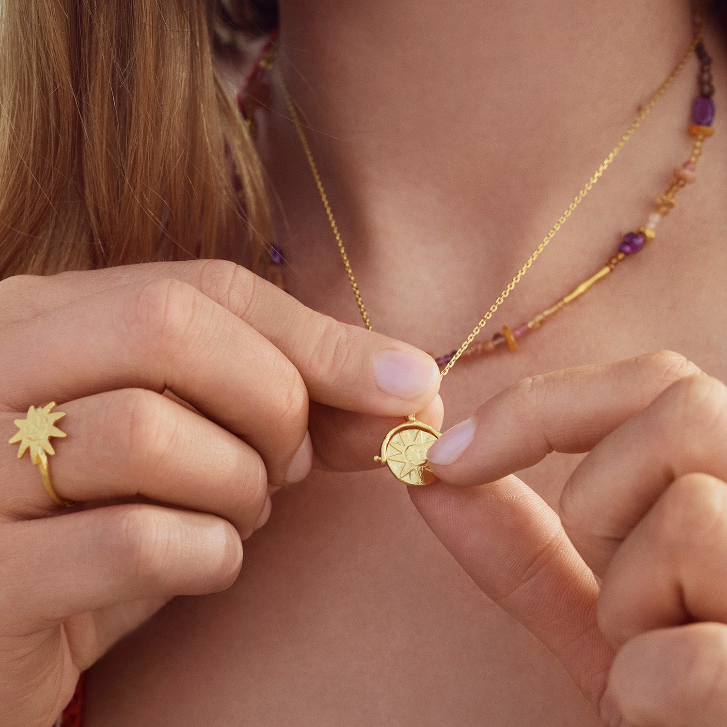 Månsten - Bianca halsband, 45+3 cm - Förgyllt silver