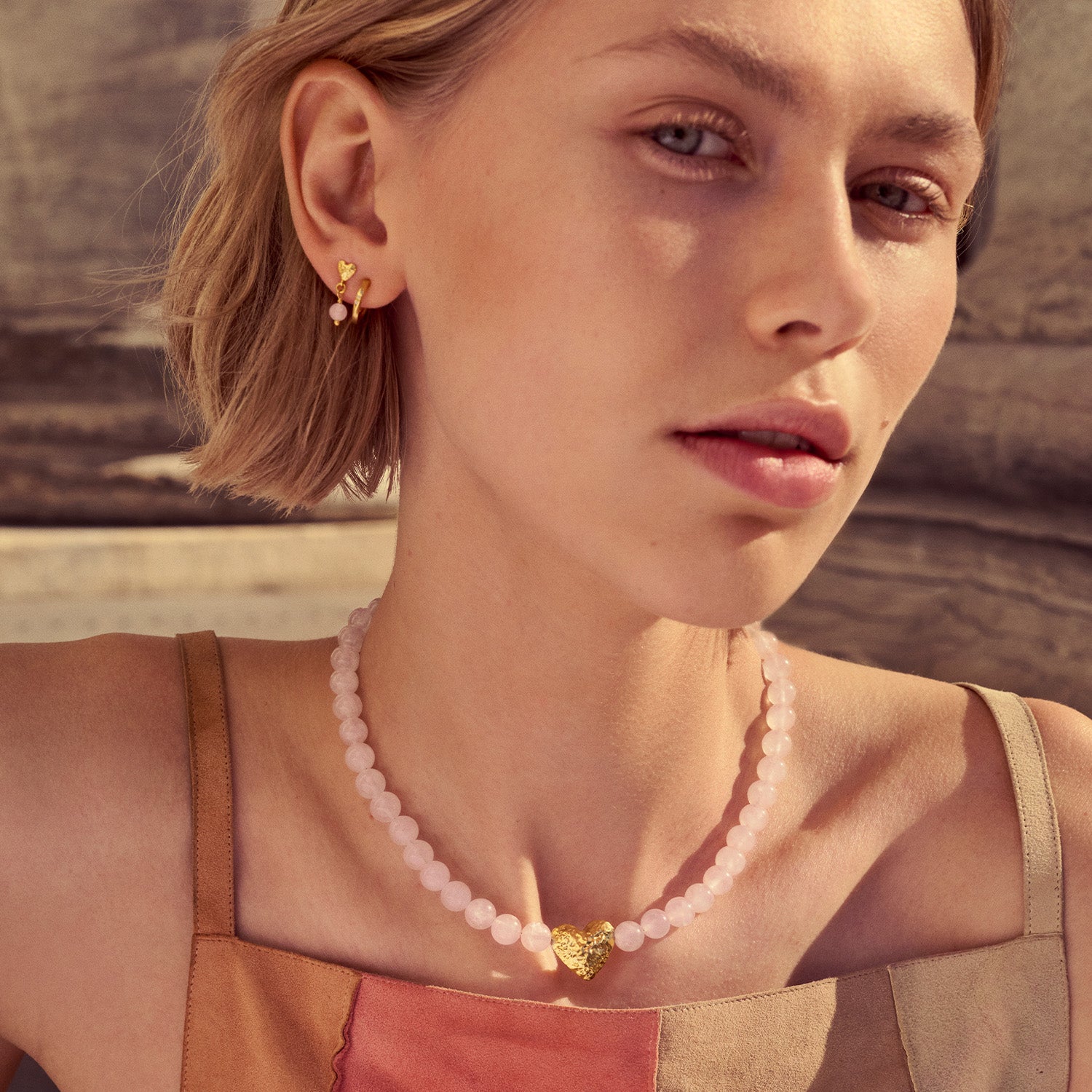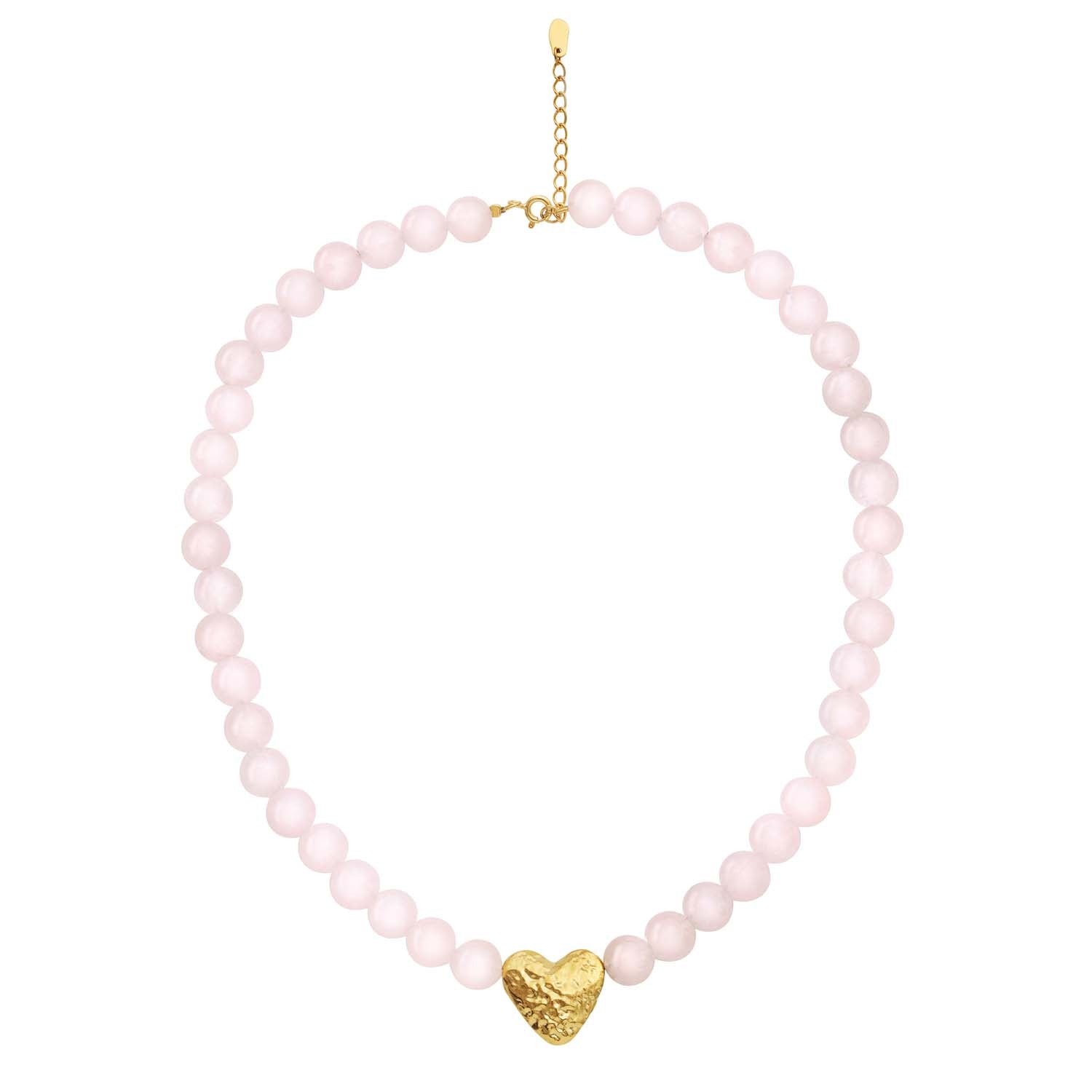 Leonora-halsbandet är en fröjd för ögat med sina fina pärlor och det vackra hjärthänget i mitten. Pärlornas mjuka, rosa nyans skapar en harmonisk kontrast till det guldpläterade hjärtat, vilket ger en touch av värme och romantik. Halsbandets struktur är len och bekväm mot huden, vilket gör det idealiskt för vardagsbruk eller speciella tillfällen.