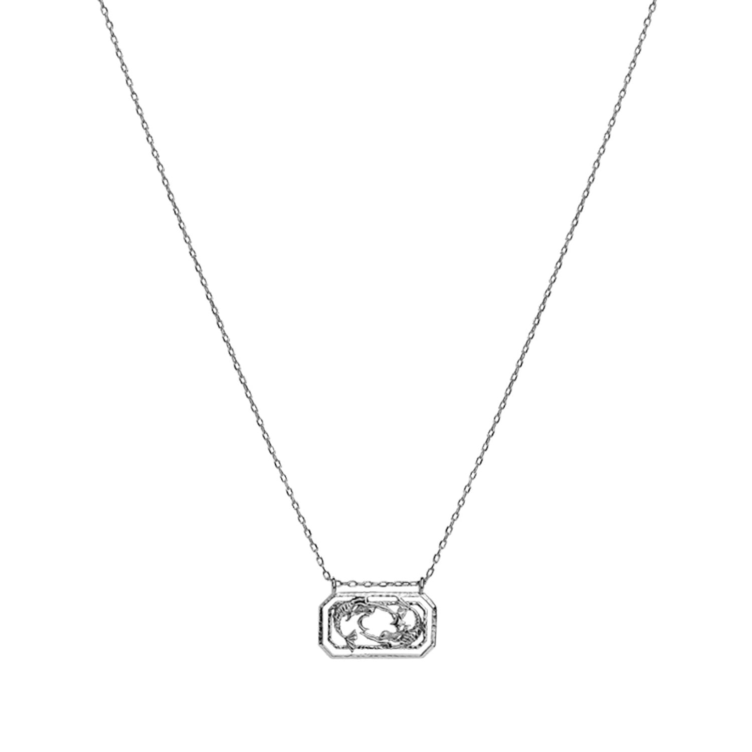 Halsbandet har en fin kedja som framhäver det detaljerade fisksymbolshänget. Silvrets glans skapar en tidlös look som kompletterar vilken garderob som helst. Designen är både modern och klassisk, vilket gör det till ett mångsidigt smycke som kan bäras ensamt eller tillsammans med andra favoriter.