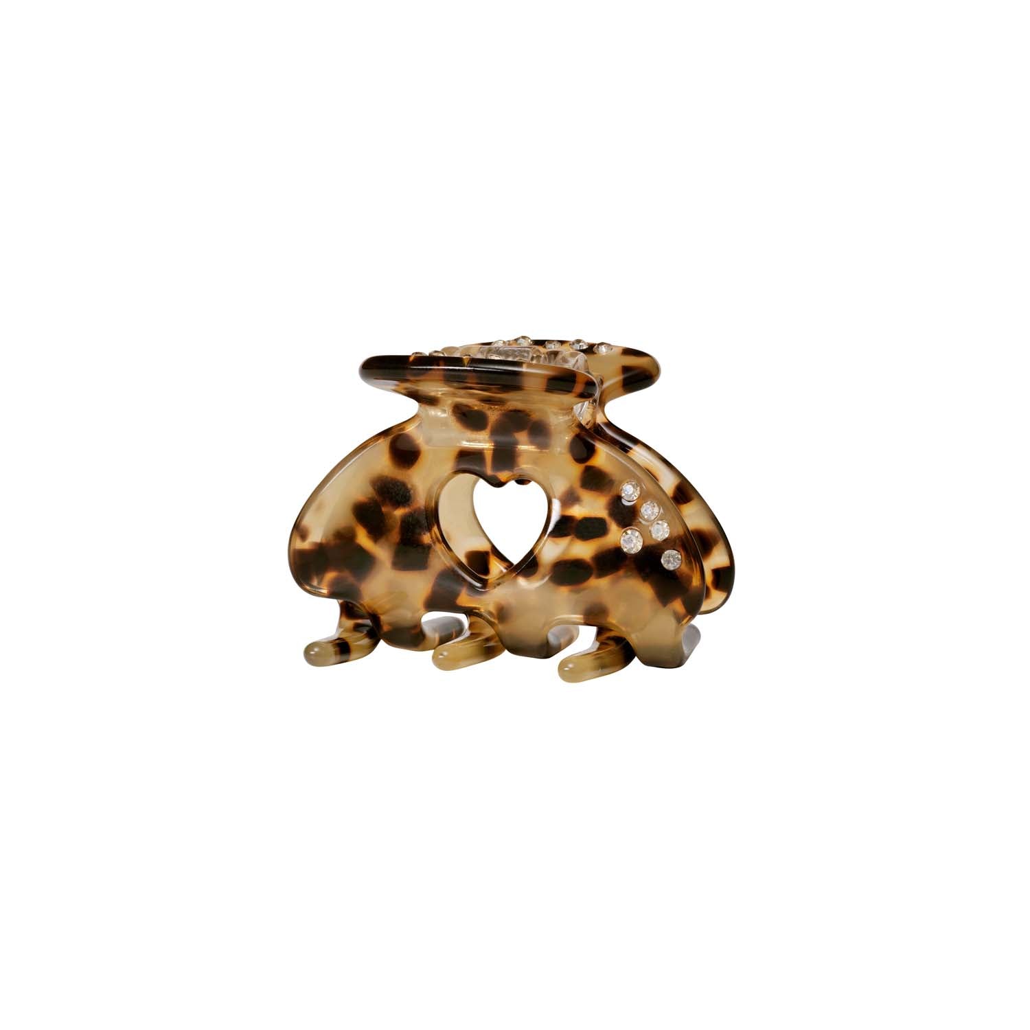 Hårspännet är tillverkat i en vacker brun nyans som påminner om ett klassiskt sköldpaddsmönster. Den släta ytan och de mjuka kurvorna gör det bekvämt att använda, medan det graverade hjärtat ger en subtil men ändå meningsfull detalj. Detta hårspänne är inte bara ett praktiskt verktyg, utan också ett smycke som kan lyfta din look.