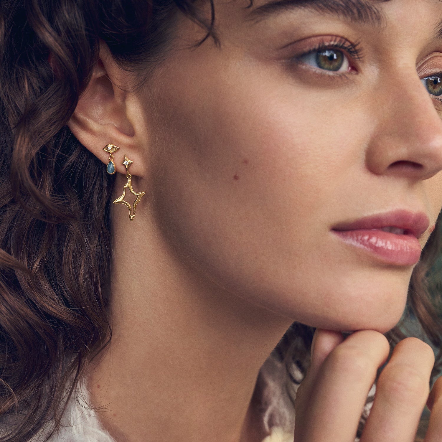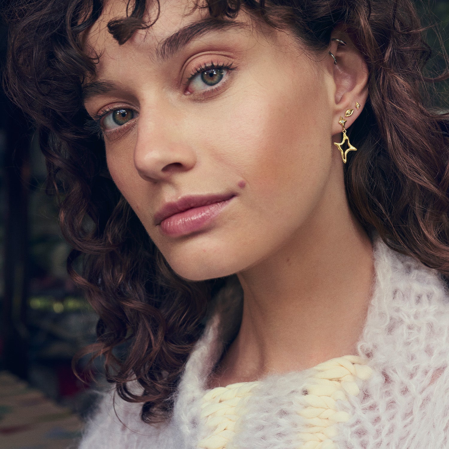 Fördelar med Roxy-örhängen:- Unik design: De förgyllda silverörhängena har en organisk form som ger en konstnärlig touch till din look.