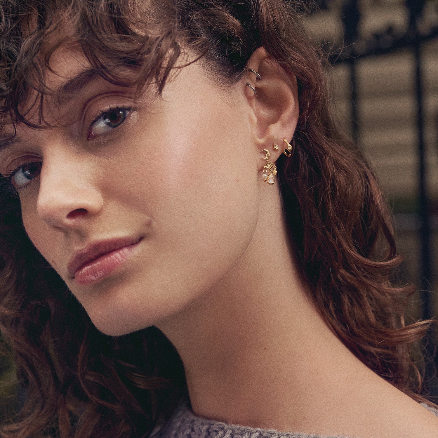 Upplev den subtila elegansen hos Maanestens Sylfide-örhängen i förgyllt silver. Dessa örhängen är skapade för att framhäva din naturliga skönhet och ge en touch av lyx till alla tillfällen.