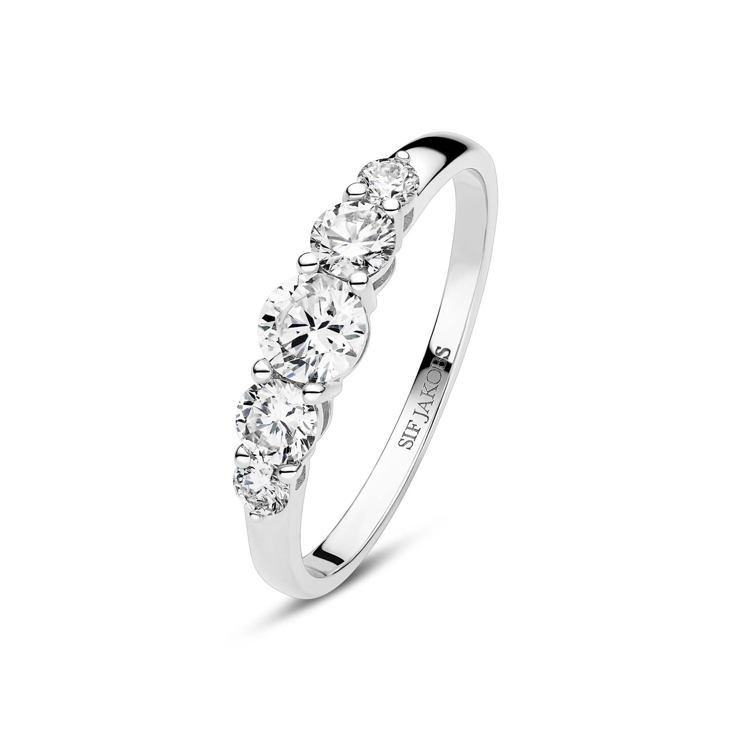 Ringen är en del av Sif Jakobs diamantkollektion, känd för sina utsökta smycken som kombinerar modern design med klassisk elegans. Vitguldets silverfärgade nyans framhäver diamantens klara skönhet och skapar en sofistikerad kontrast som fångar ljuset från alla vinklar.