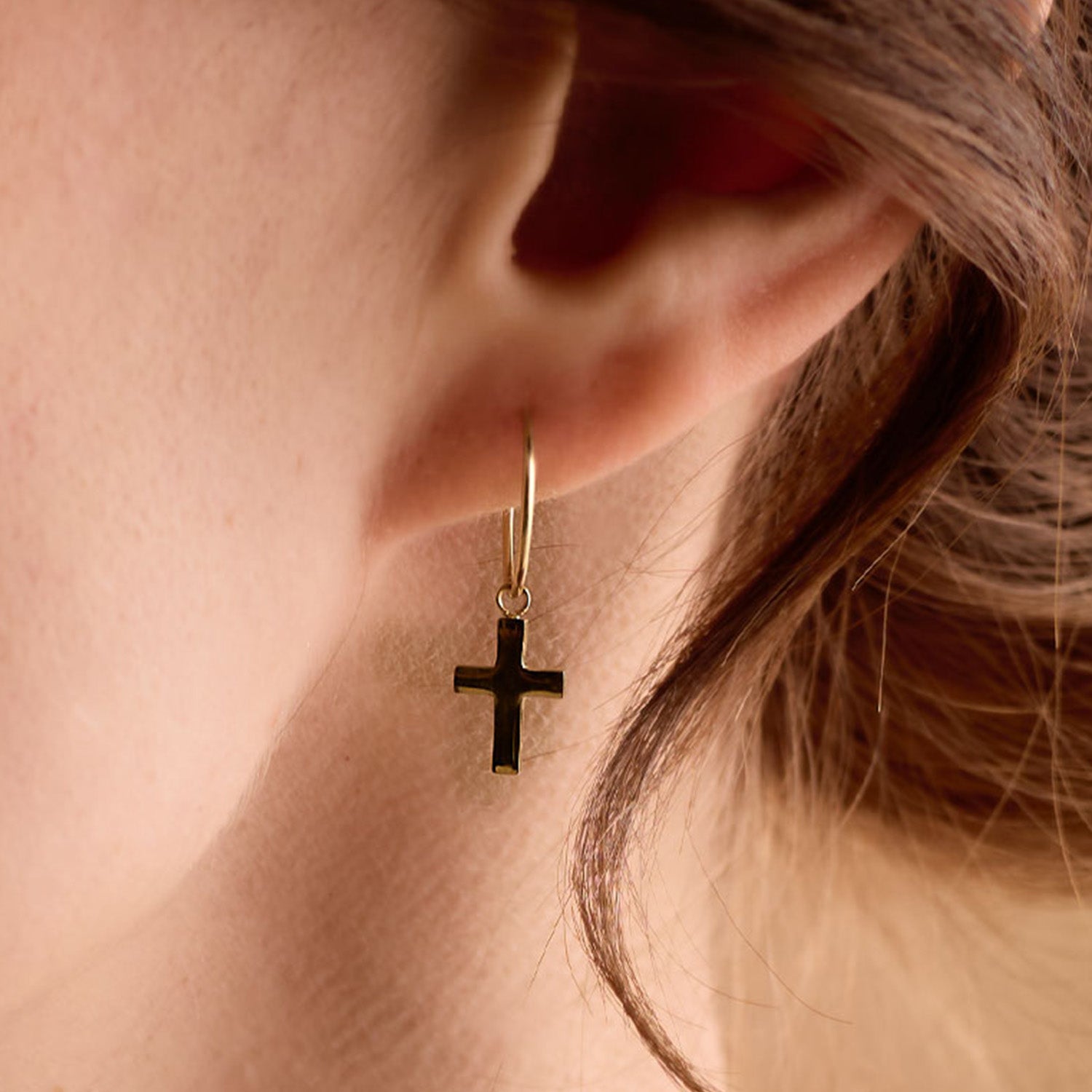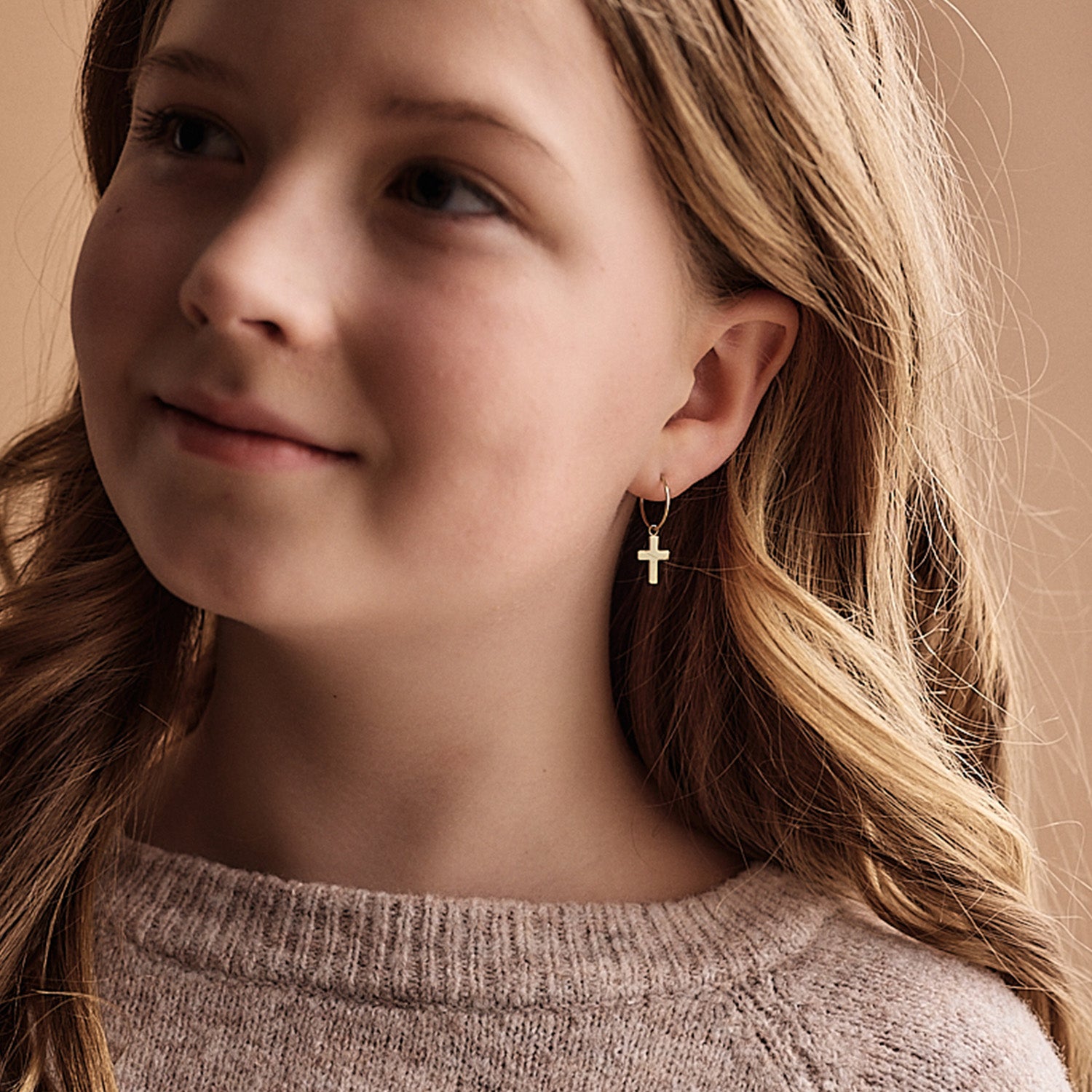 Örhängena är designade för kvinnor, barn och flickor, vilket gör dem mångsidiga och perfekta för många tillfällen. Den eleganta korssymbolen ger en klassisk look som aldrig går ur tiden.