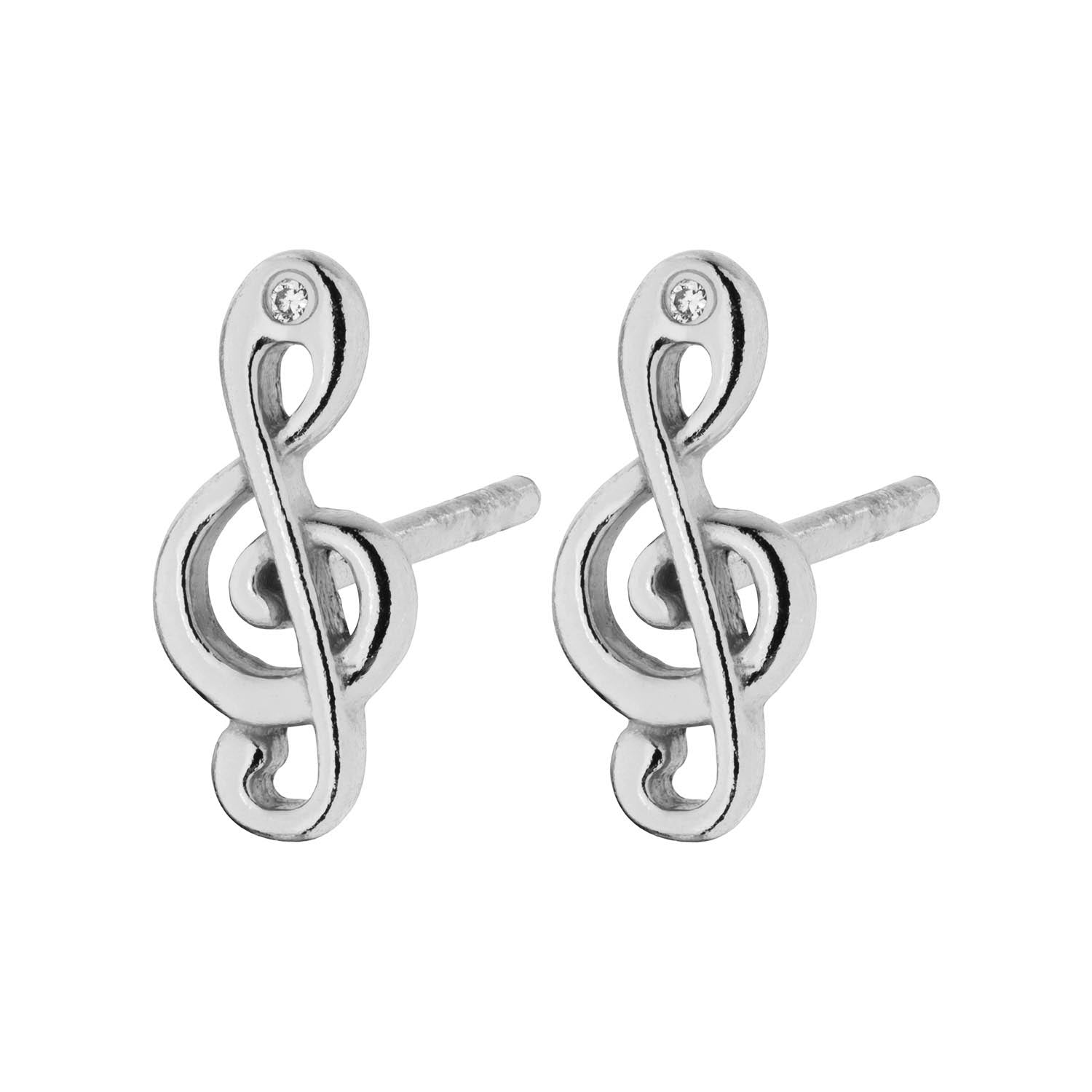 Vibholm KIDS - Örhängen med g-nyckel, zirkonia - Silver