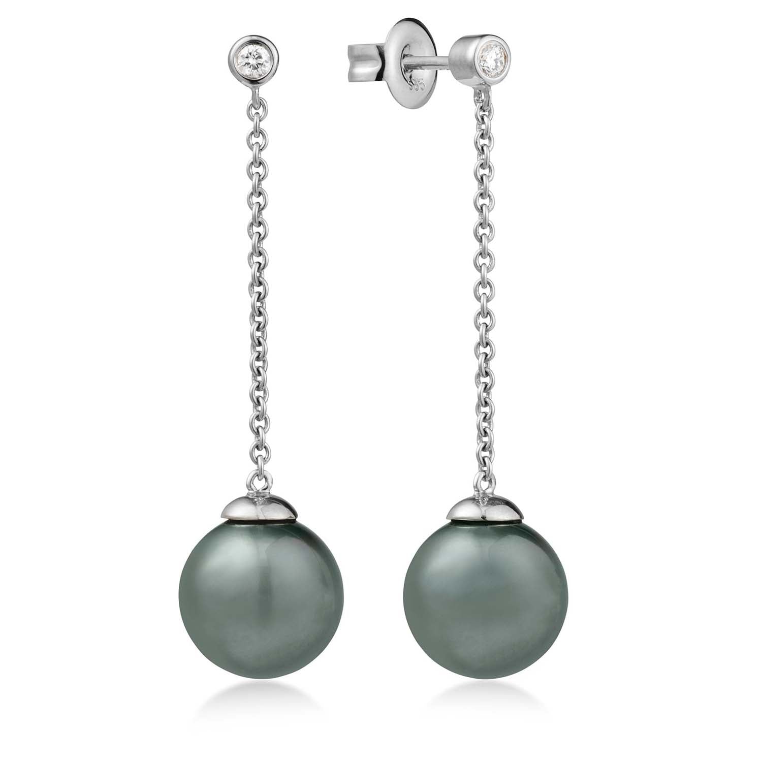 Aveny LUXURY - Örhängen med tahitipärla, 8,5-9 mm/0,04 ct. w/sil - 14 kt vitguld