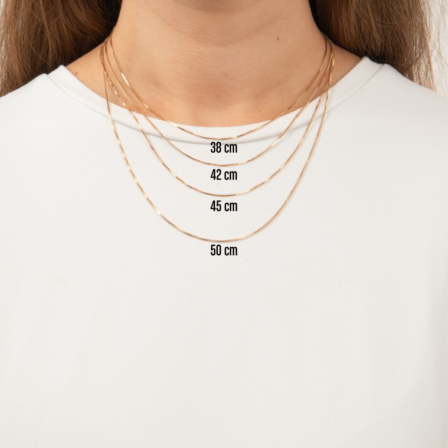 Upplev tidlös elegans med BNH:s Venezia-halsband i 8 kt. guld. Denna delikata kedja är designad för att komplettera alla stilar, oavsett om det är för ett speciellt evenemang eller som en del av din vardagsgarderob. Med sin fina tjocklek på 0,9 mm är den både subtil och sofistikerad, vilket gör den till ett mångsidigt smyckesval.