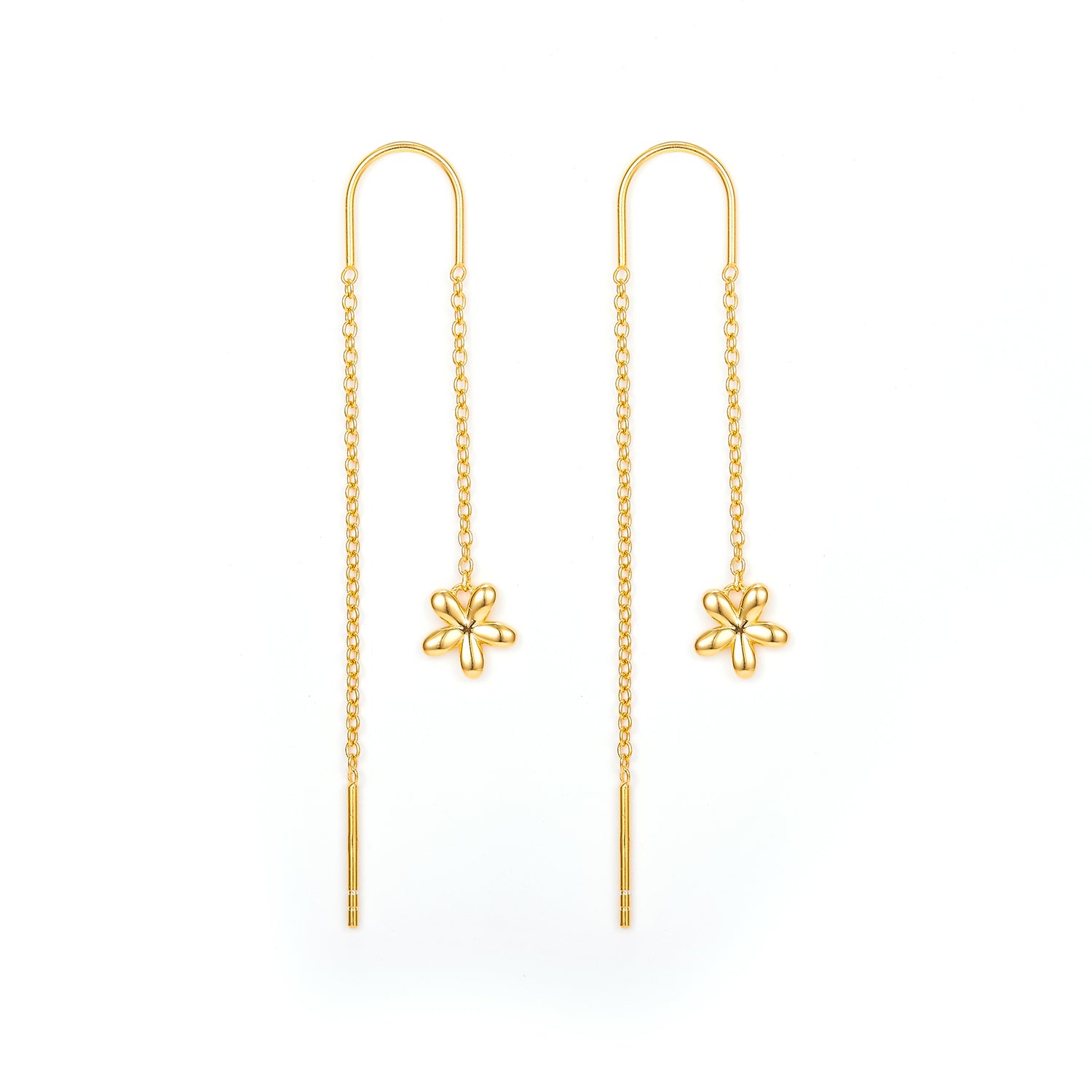 Örhängena är 4 cm långa och har en gyllene nyans som fångar ljuset på ett subtilt och inbjudande sätt. Den guldpläterade ytan ger ett varmt sken, medan de fina blomdetaljerna skapar en känsla av lätthet och elegans.