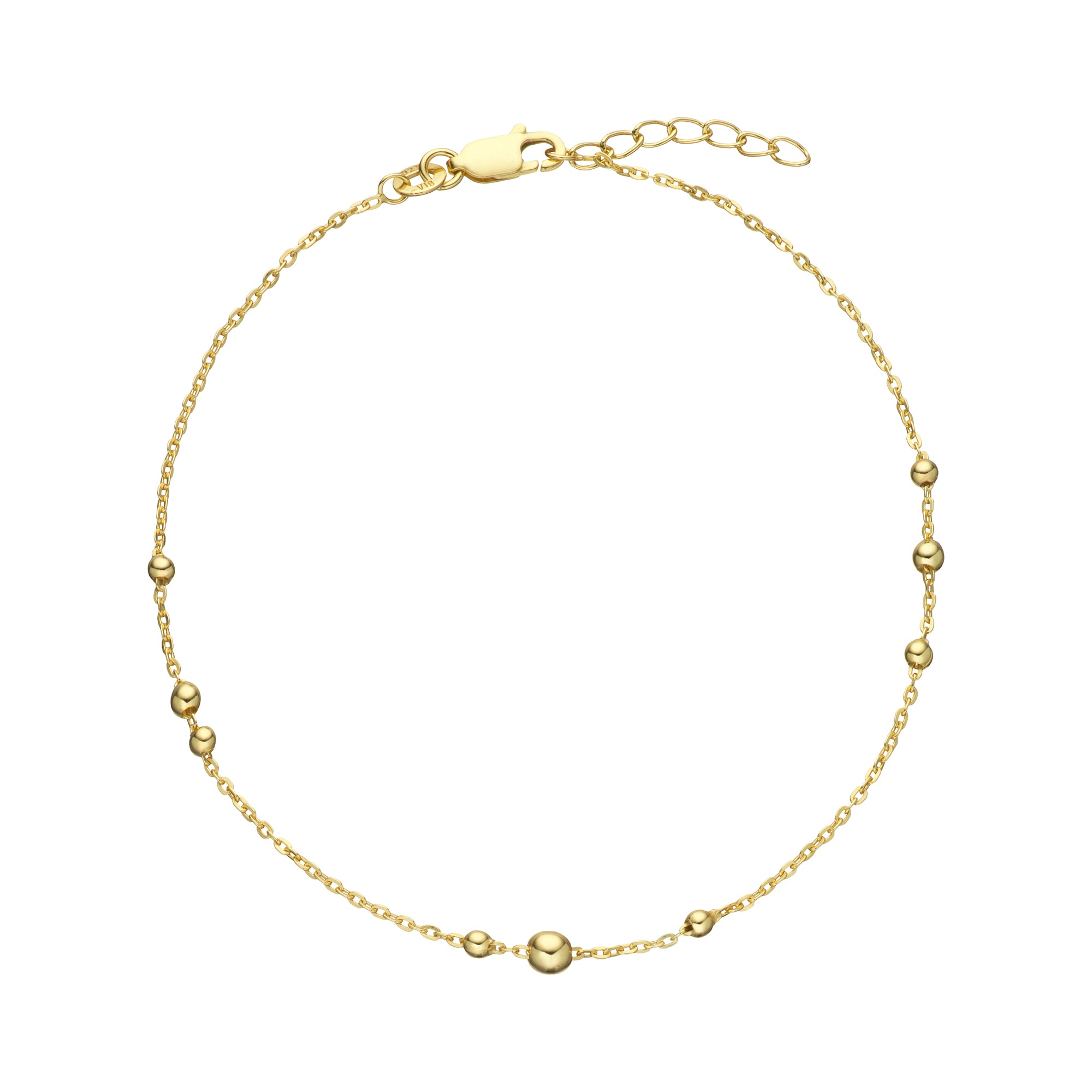 Vibholm SØLV - Fotlänk med blandade kulor, 23+2 cm - Förgyllt silver