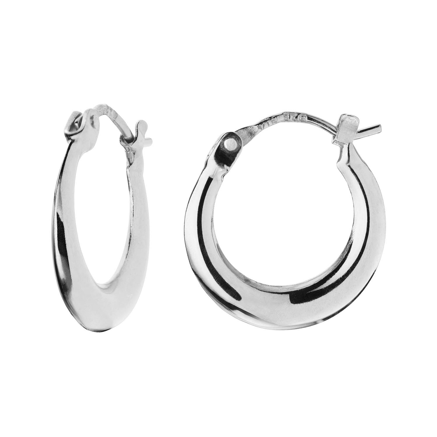 Örhängena är tillverkade av rent silver, vilket ger dem en blank yta som fångar ljuset vackert. Deras enkla men sofistikerade utseende gör dem till ett mångsidigt accessoar som kan bäras både till vardags och festliga tillfällen.