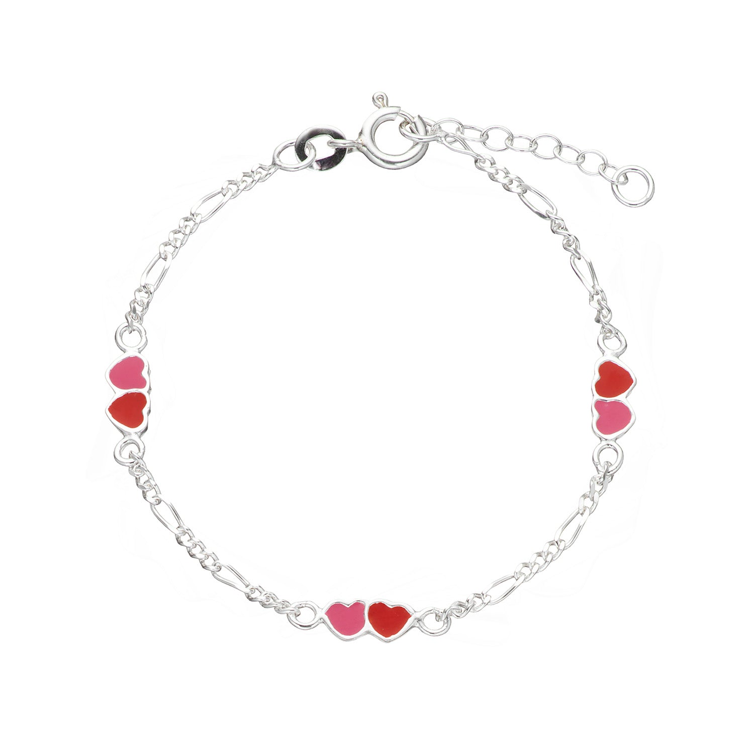Vibholm KIDS - Armband med rosa/röda hjärtan, 14+2 cm - Silver