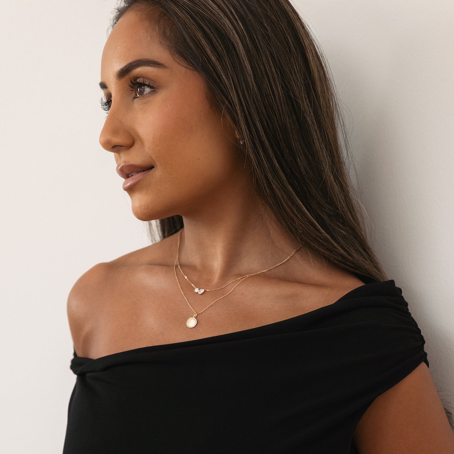 Hänget utstrålar en subtil elegans med sin släta, gyllene yta som fångar ljuset vackert. De infattade kubiska zirkoniastenarna skapar en lysande kontrast till det varma guldet och tillför en gnista som drar blickarna till sig. Den runda formen ger en harmonisk balans som gör hänget till ett mångsidigt smycke som kan bäras ensamt eller tillsammans med andra favoriter.