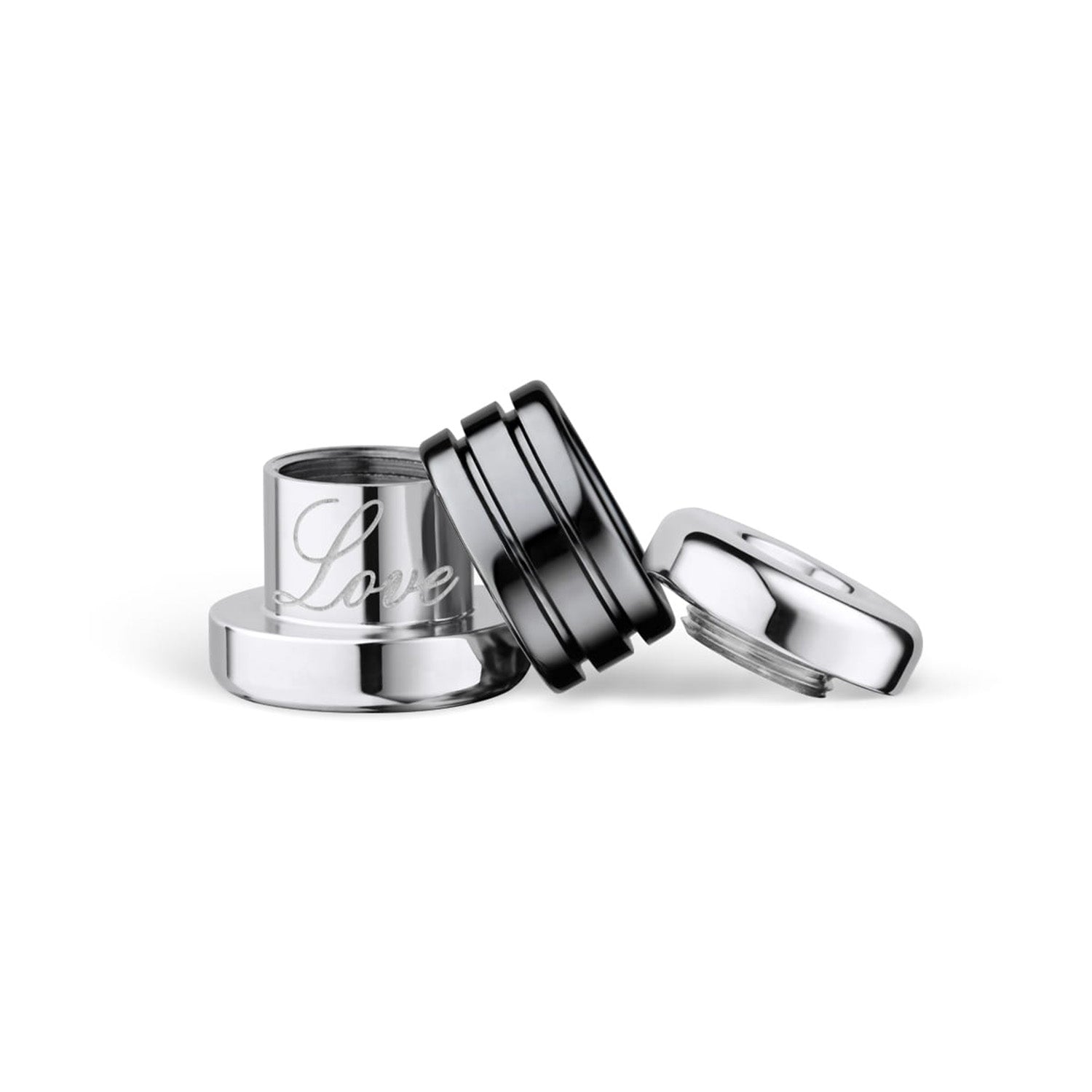 Den släta ytan i rostfritt stål ger berlocken en lyxig känsla, medan de svarta detaljerna skapar en sofistikerad kontrast. Den kompakta formen gör den idealisk att bära ensam eller kombinera med andra berlocker för ett personligt uttryck.
