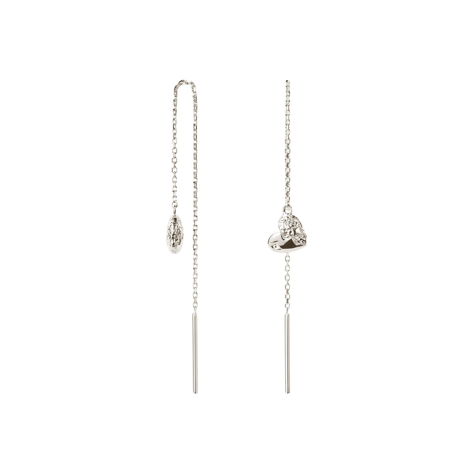 Dessa örhängen är tillverkade i skimrande silver som fångar ljuset och ger en subtil glans till din look. Den fina kedjan och det fina hjärthänget skapar en lätt och luftig känsla som gör dem bekväma att bära hela dagen. Örhängena har en modern och minimalistisk stil som gör dem mångsidiga och lätta att kombinera med andra smycken.