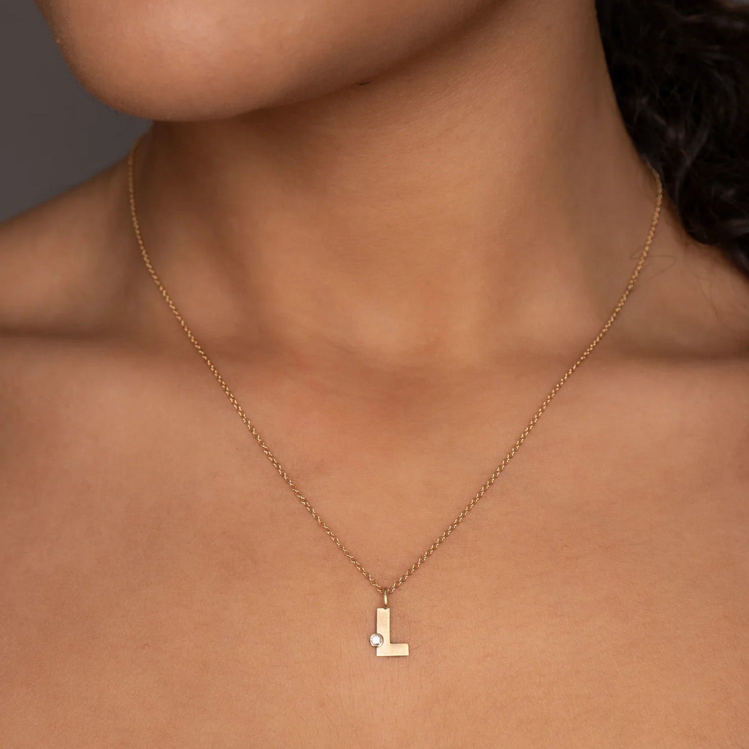 Dulong Fine Jewelry - Hänge med liten bokstav, L/0,04 ct. F/G vs2 - 18 knop. guld