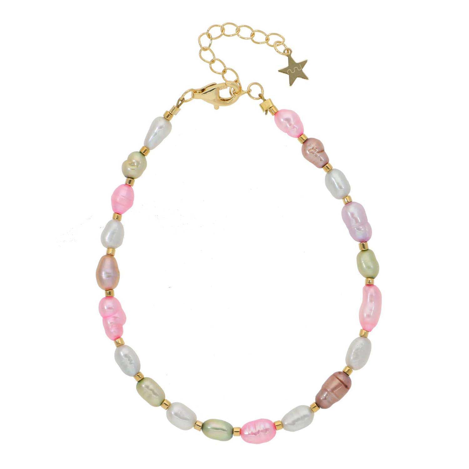 Den lätta strukturen på pärlorna ger en behaglig känsla mot huden, medan den guldpläterade kedjan säkerställer hållbarhet och stil. Detta armband är inte bara ett smycke, utan en upplevelse av färger och design som kan bäras till både vardag och fest.