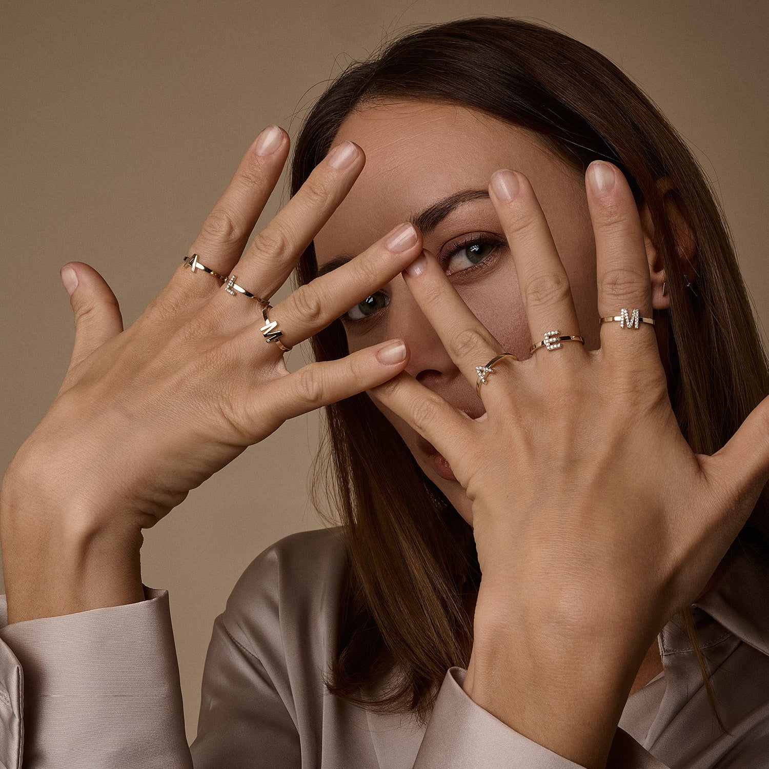 Nuran Bokstavsring i 14 kt. Vitt guld
