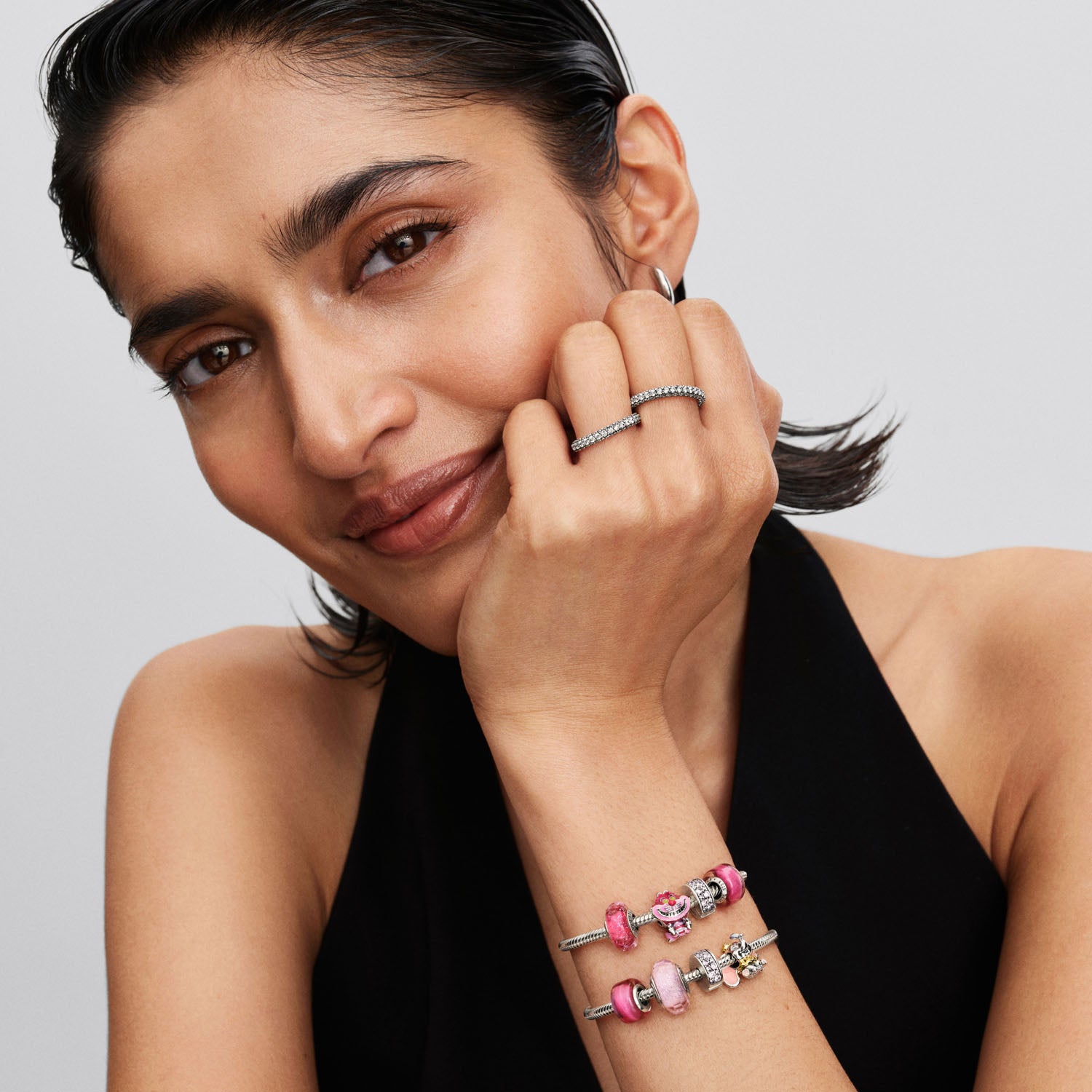 Den rosa och lila färgpaletten framhäver kattens ikoniska leende, medan de fina detaljerna i silvret ger en känsla av djup och dimension. Pandoras Cheshire Cat-berlock är inte bara ett smycke, utan en liten del av en saga som du kan bära med dig varje dag.