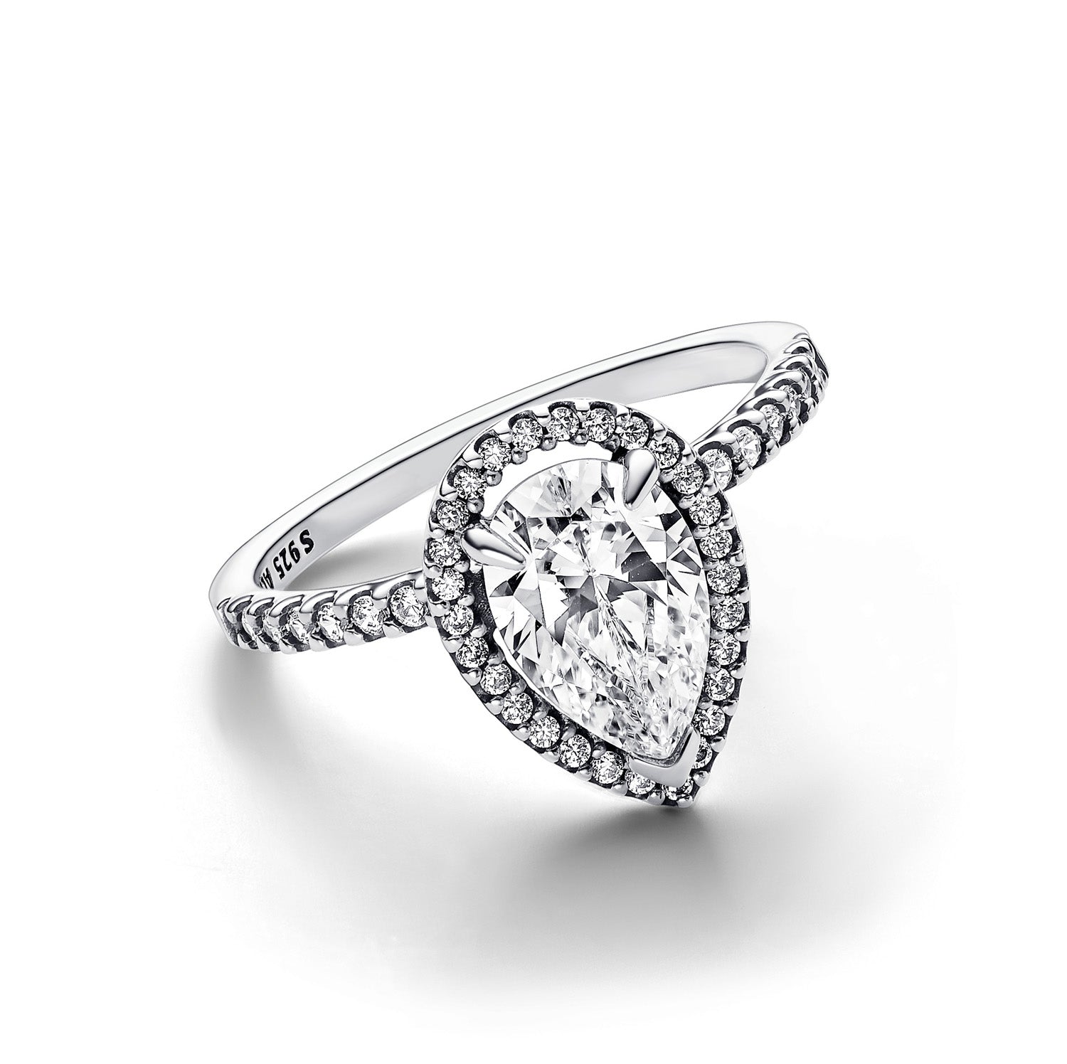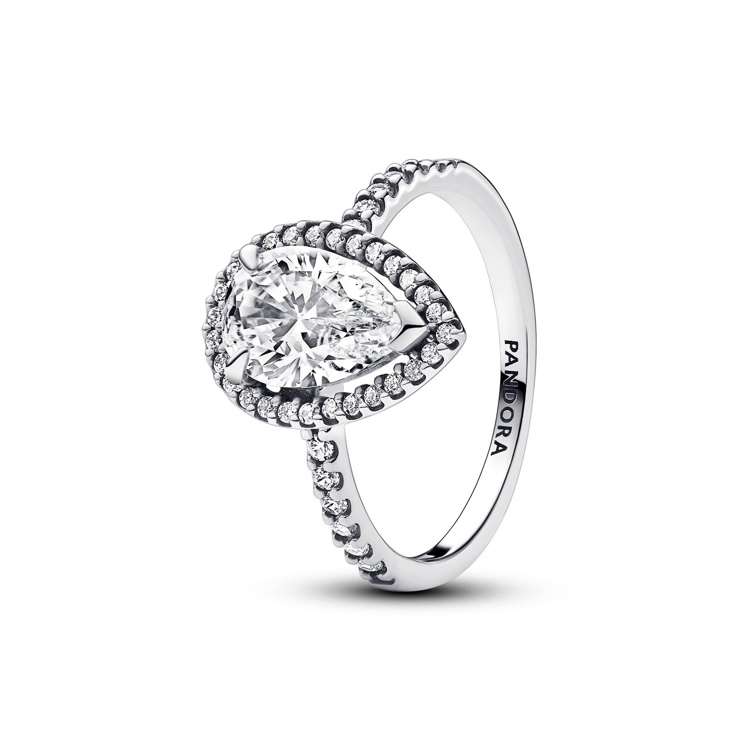 Pandora - Sparkling Pear Halo ring, Large - Silver