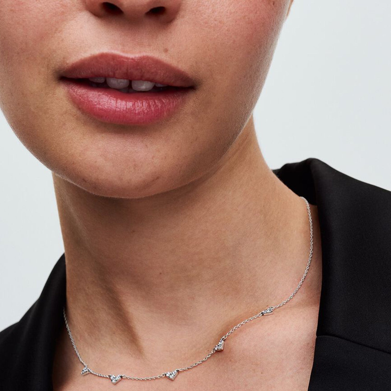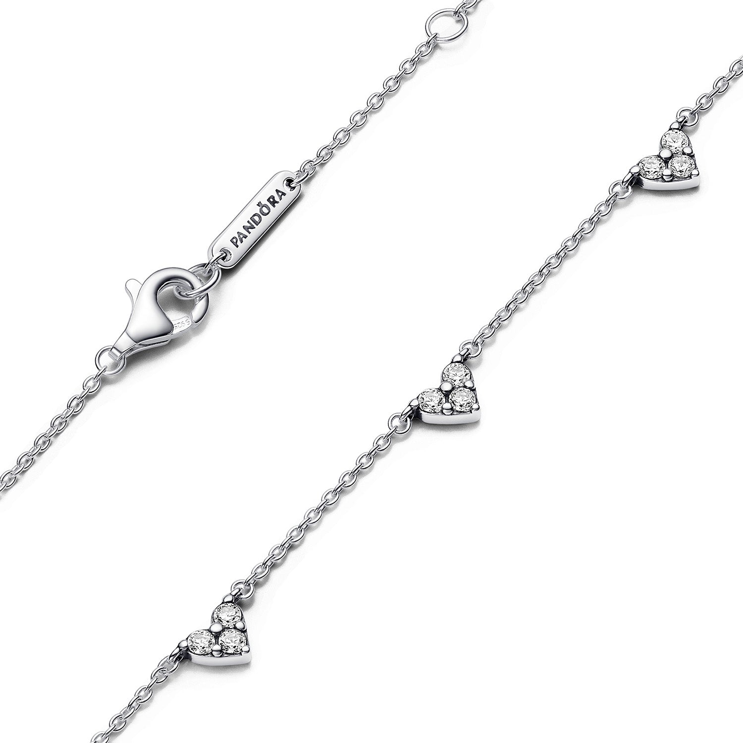 Pandora - Halsband med hjärtformade trippelstenar, 45 cm/zirkonia - Silver