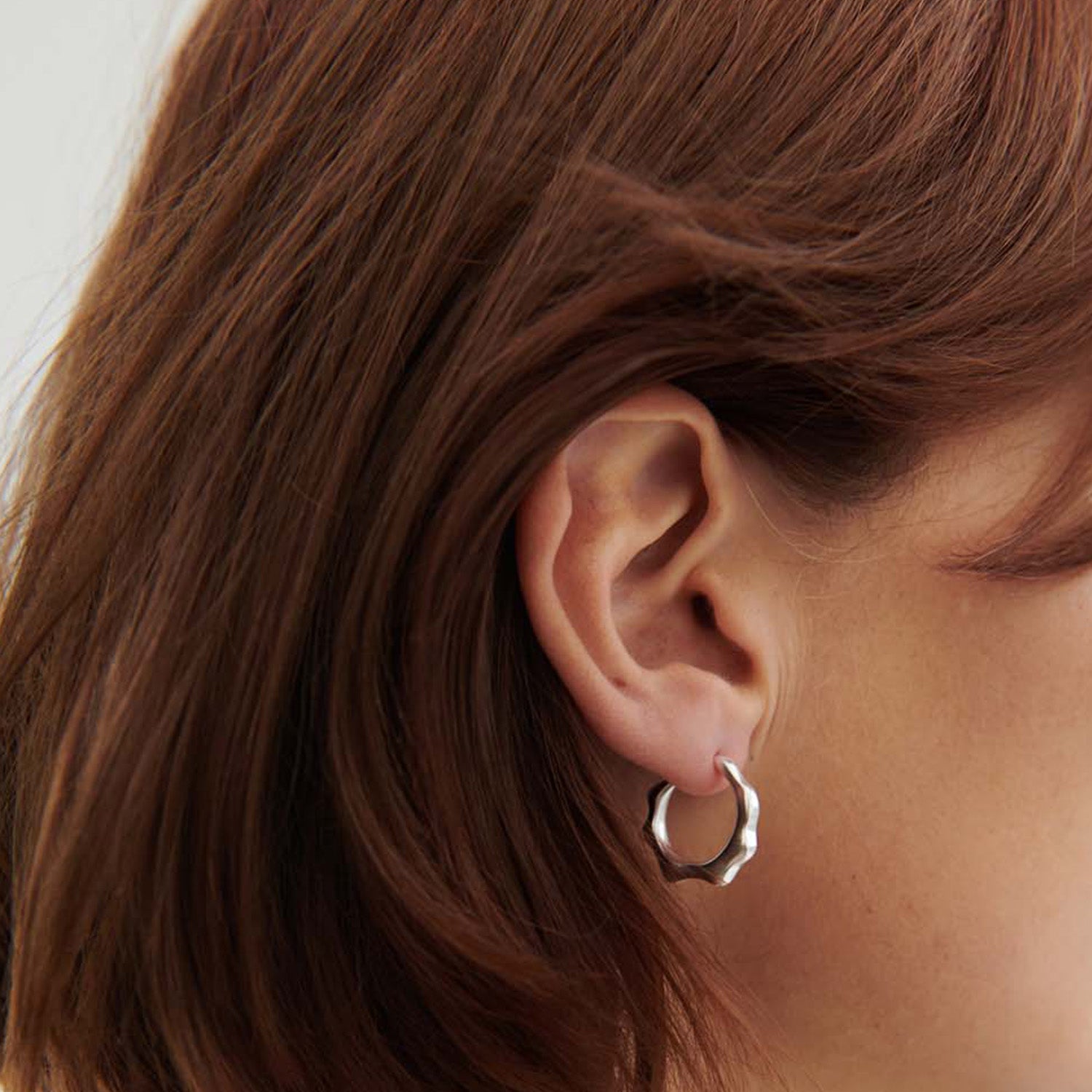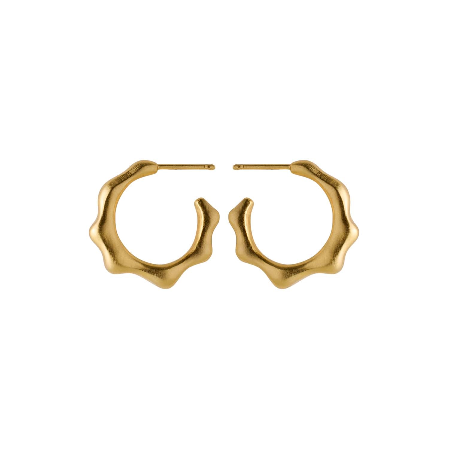 Örhängena har en vacker, organisk form som påminner om havets vågor. Den guldpläterade ytan lyser med en subtil glans som fångar ljuset på ett elegant sätt. Den mjuka, gyllene färgen ger en känsla av värme och lyx, medan den unika formen skapar en modern och elegant estetik.
