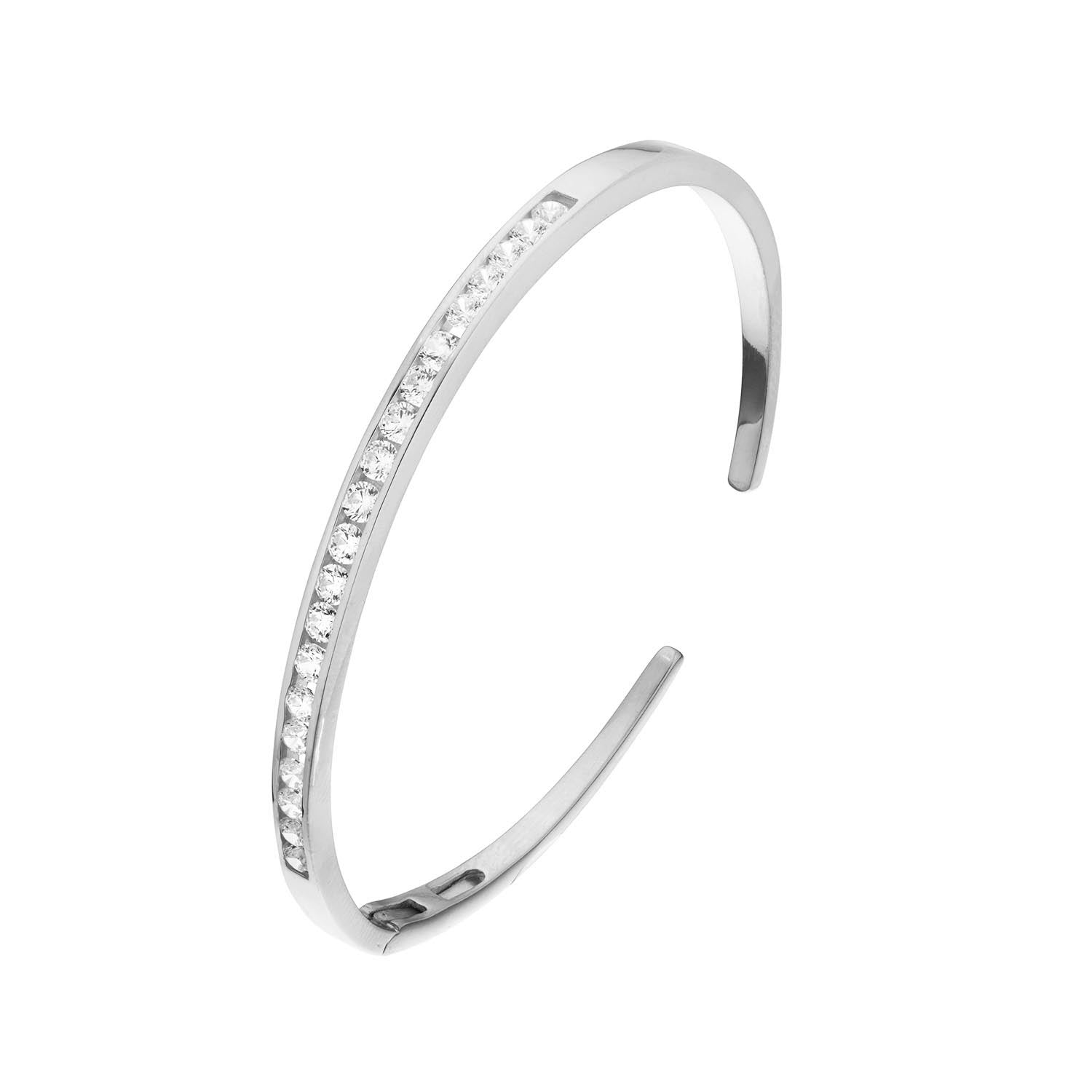 Armbandets silverfärg ger ett klassiskt och elegant utseende som passar alla tillfällen. Den släta ytan känns bekväm mot huden, medan zirkoniastenarna ger en touch av lyx. Den eleganta linjen av stenar längs armbandet skapar en subtil men iögonfallande glans som framhäver din stil.