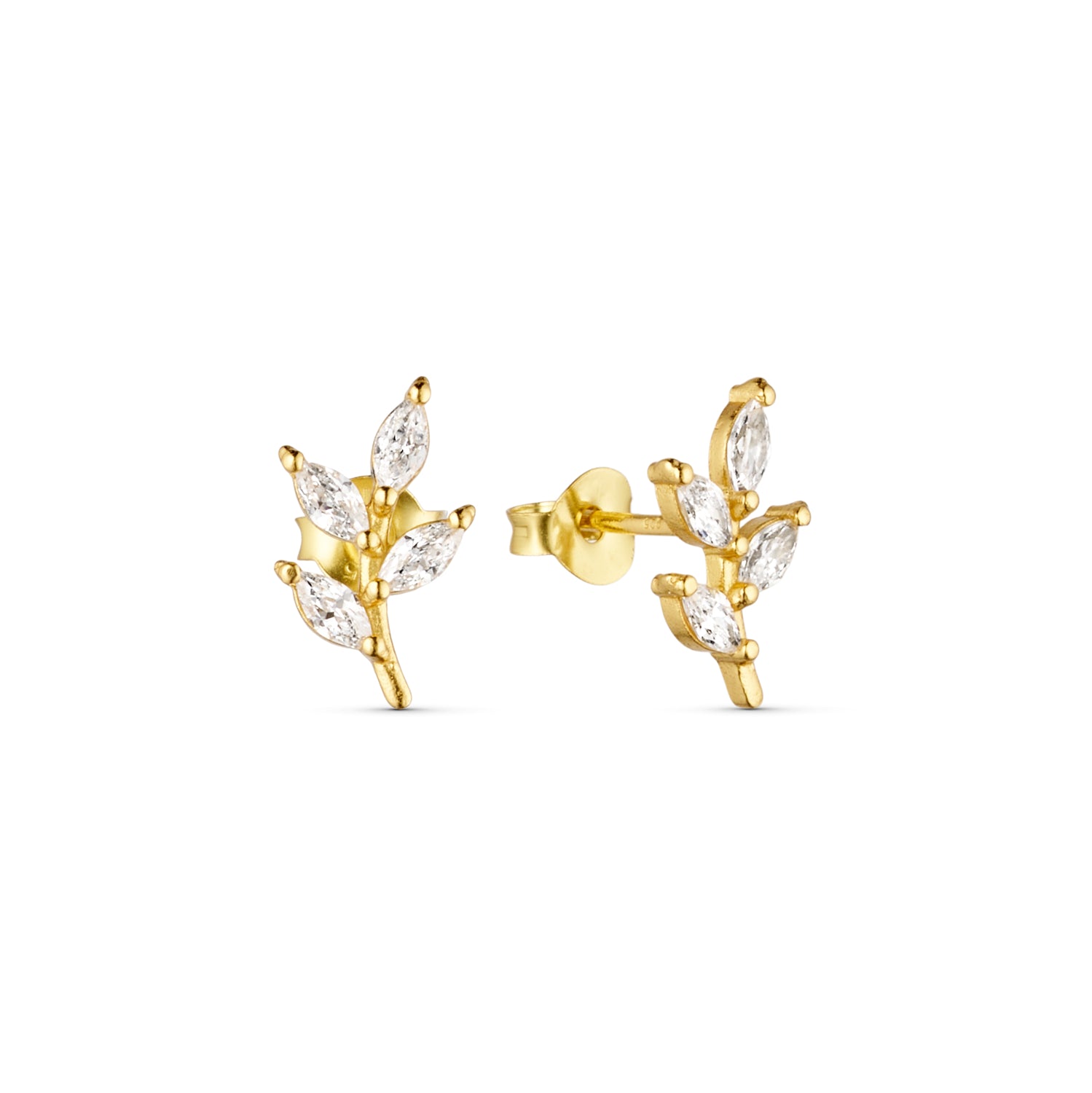 Tillverkade i guldpläterat silver och prydda med gnistrande cubic zirconia stenar, dessa vackra örhängen lägger till en touch av lyx till vilken outfit som helst. Det delikata bladmotivet symboliserar naturens skönhet och elegans.